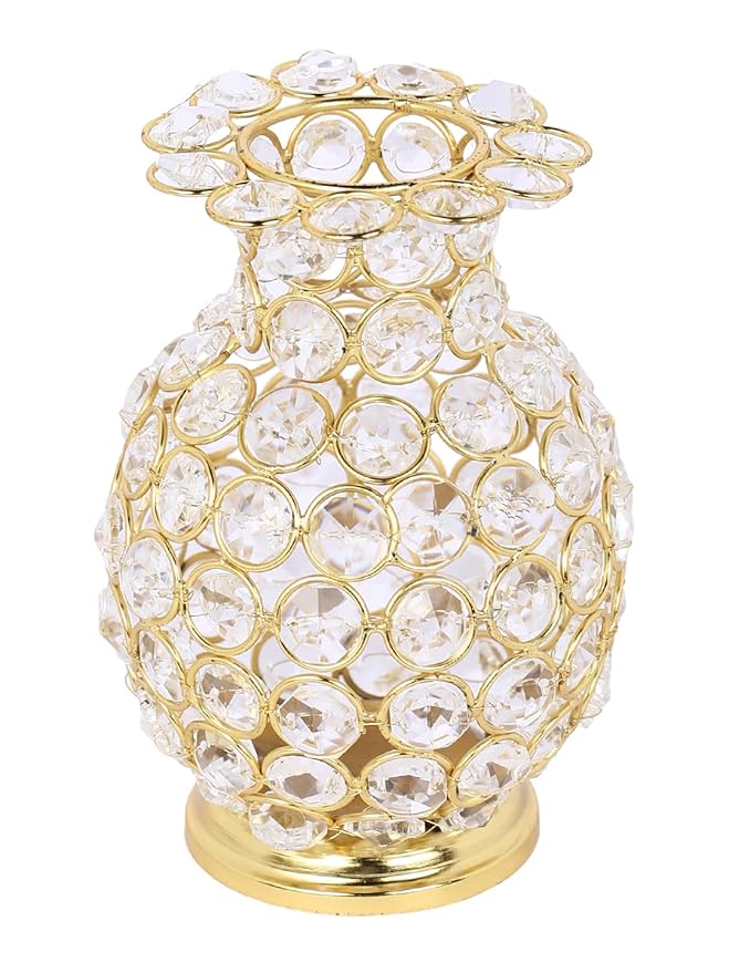The Golden Metal Flower Vase with Crystal is versatile enough to suit a wide range of décor styles: