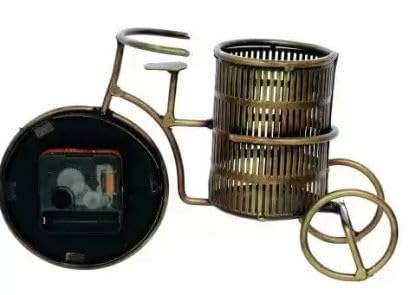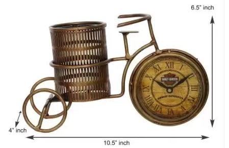 Metal Handmade Decorative Cycle Shape Pen Stand/Pen Holder with Clock – Elegant Tabletop Showpiece