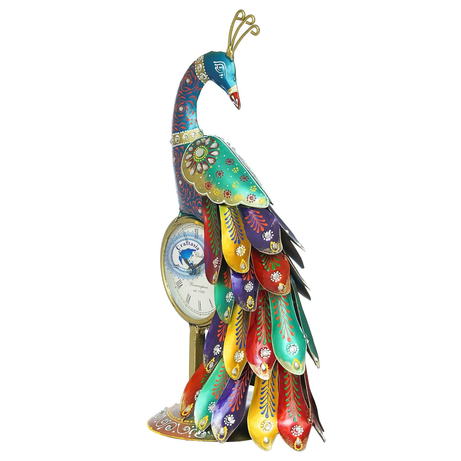 Bring a touch of elegance, culture, and sophistication to your walls with the Metal Peacock Clock for Home Living Room Decor. This exquisite wall clock is more than just a timepiece—it is a masterpiece of craftsmanship and decorative art. Designed for those who appreciate art, nature-inspired décor, and functional home accessories, this clock is perfect for living rooms, bedrooms, offices, hallways, and even gift purposes.