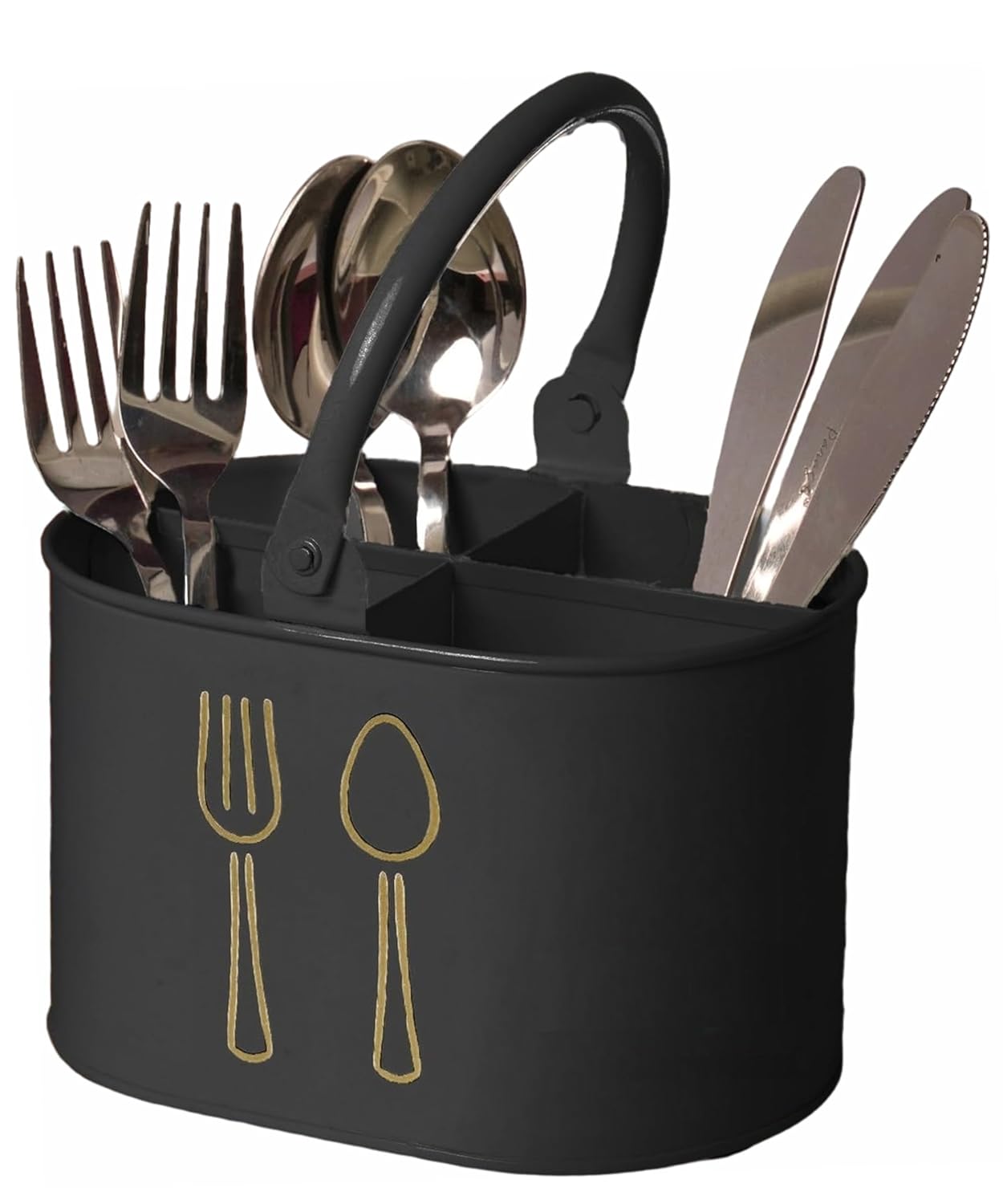 Made from high-quality alloy steel, this spoon holder is strong, durable, and built for long-term use. The powder-coated black finish adds a modern and elegant touch while providing resistance against rust and daily wear. Its sturdy construction ensures stability, making it suitable for holding spoons, spatulas, ladles, forks, and knives without tipping over.