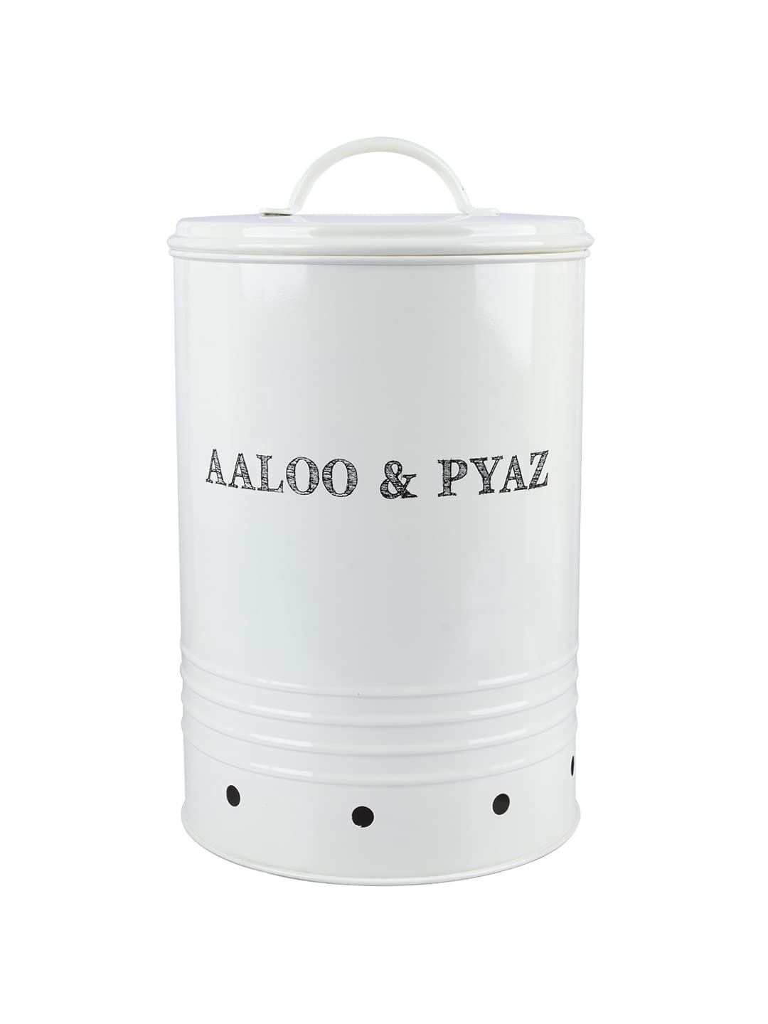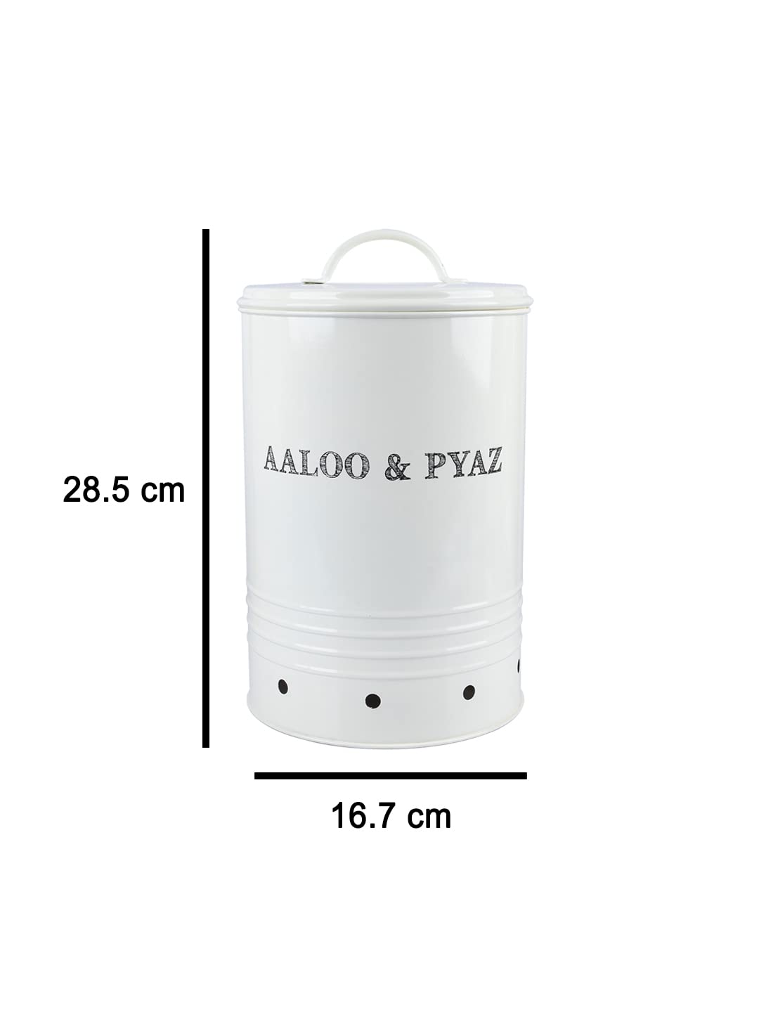 🥔 Mild Steel White Aaloo & Pyaz Storage Jar – Durable, Stylish & Functional Kitchen Organizer