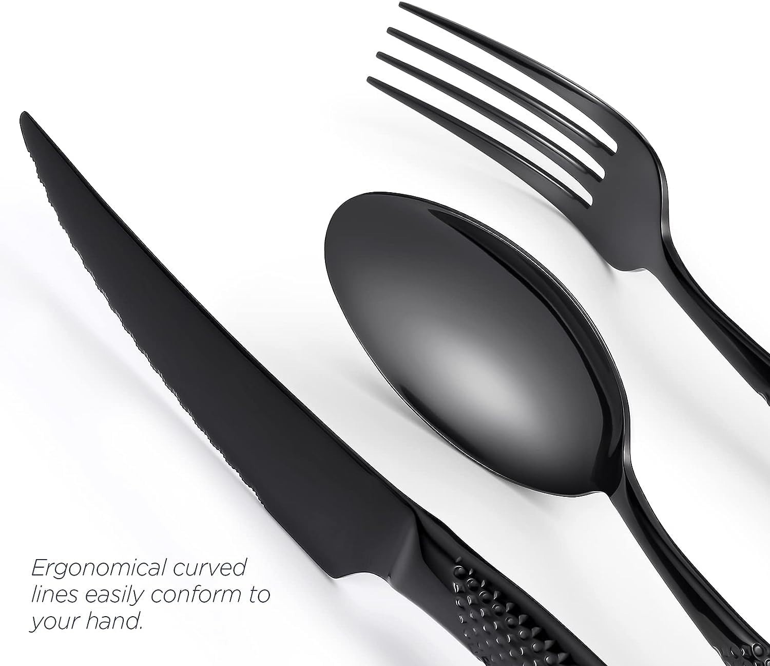 Unlike regular silver cutlery, the bold black hammered design makes a statement of elegance and modernity.