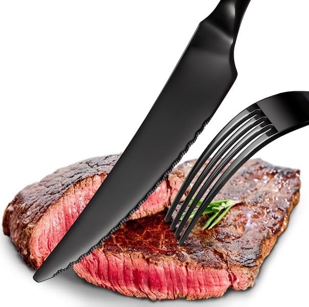 With its unique hammered design, polished black finish, and ultra-sharp serrated edges, this cutlery set combines modern aesthetics with everyday practicality. Whether for daily meals, family gatherings, or outdoor camping, this set delivers unmatched quality and comfort.
