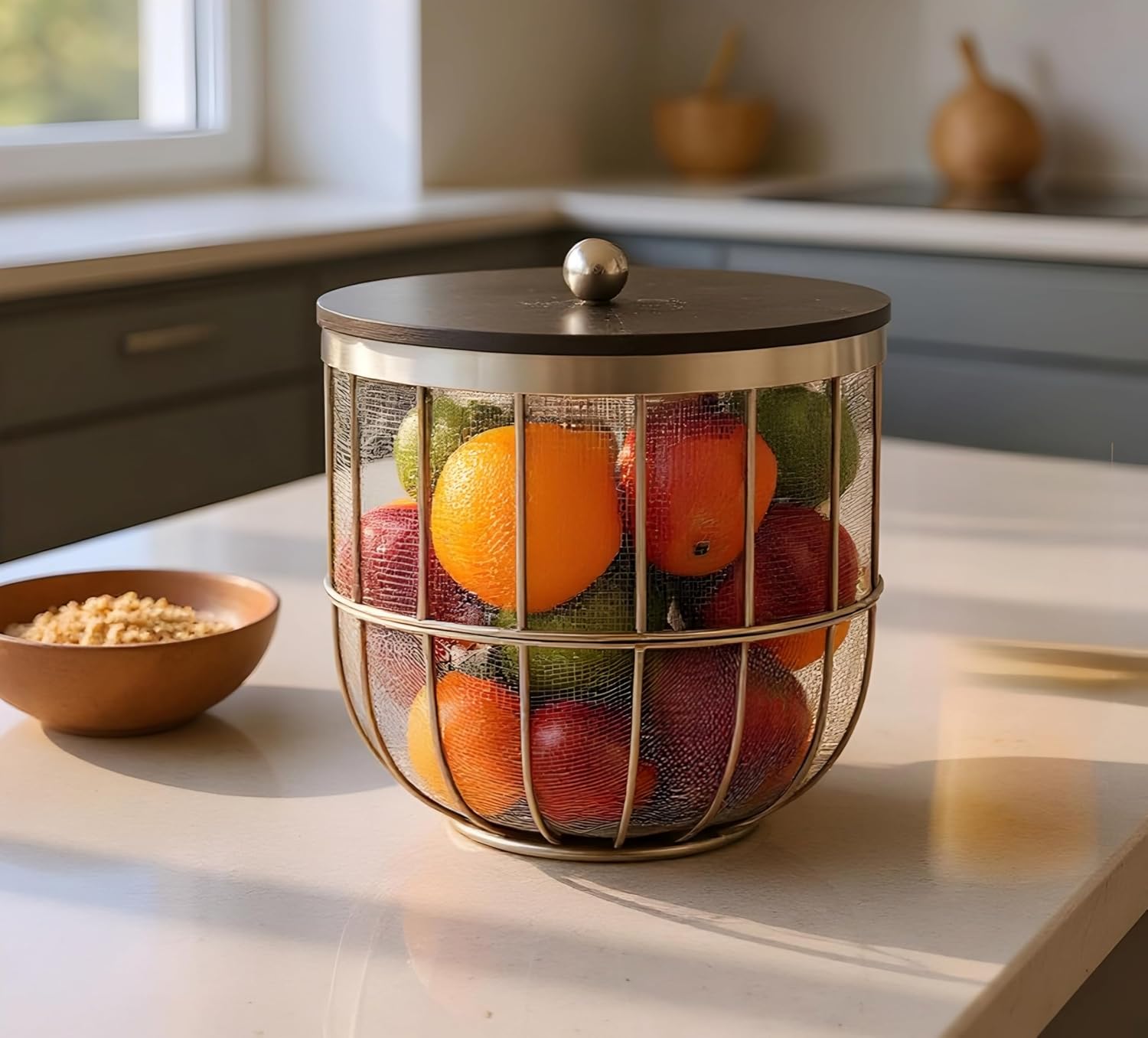 The rounded square shape not only looks modern but also provides stability, preventing tipping or spilling. The protective lid adds an extra layer of durability while keeping your fresh produce safe and clean. Designed to last, this basket is a long-term investment for an organized and stylish kitchen.