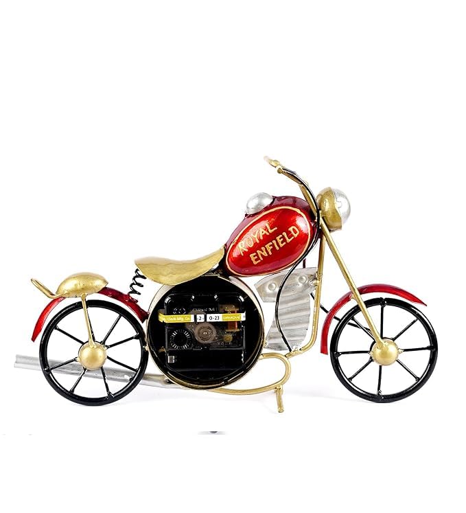 Add a bold statement of nostalgia and craftsmanship to your interior décor with the Motorbike Table Clock, a unique decorative timepiece inspired by classic vintage motorcycles. Designed especially for bike enthusiasts and lovers of antique décor, this table clock perfectly blends retro motorbike styling with functional analog timekeeping, making it a standout décor accessory for homes and offices alike.