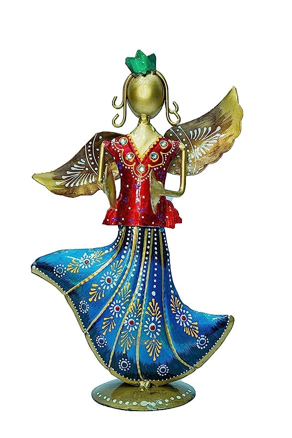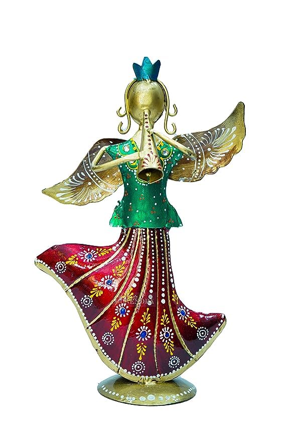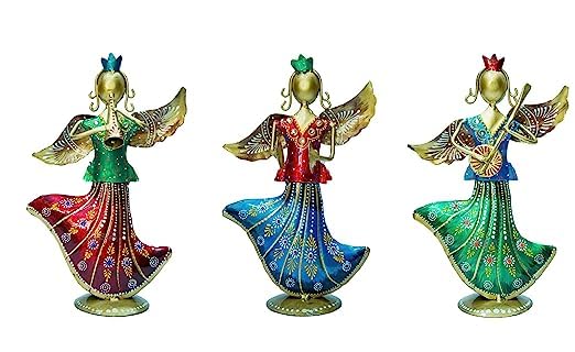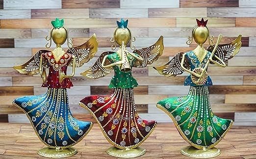 This beautifully crafted set of three Multi Colour Metal Rajasthani Musicians makes a striking addition to any space. The antique multicolour finish gives your living room, bedroom, dining area, office desk, café, hotel lobby, or any corner of your home a perfect fusion of vintage charm and modern elegance. These dancing musician figurines instantly elevate the ambiance with their artistic and cultural appeal.