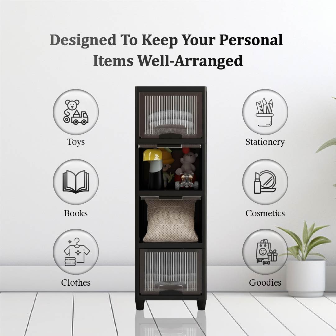 The biggest highlight of this storage box is its modular design, allowing it to blend effortlessly into any space. With a clean, minimalist black exterior, it adds a premium touch to your dressing table, office desk, bedside table, kitchen shelf, or wardrobe. The deep storage drawer slides smoothly, offering quick access to items that you need regularly.