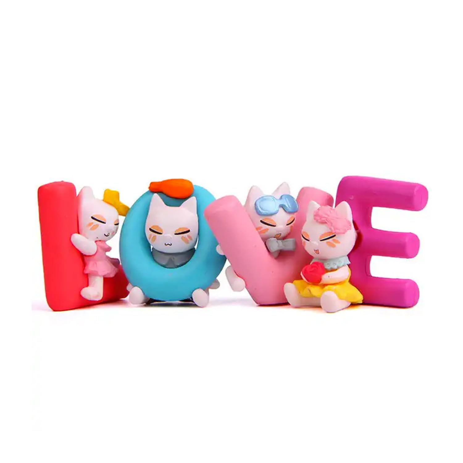 Add a touch of love, color, and charm to your space with this Multicolor Love Alphabet Cat Dolls Showpiece. Designed with care and creativity, this delightful set of four animated cat figurines forms the word LOVE, symbolizing affection, connection, and happiness.