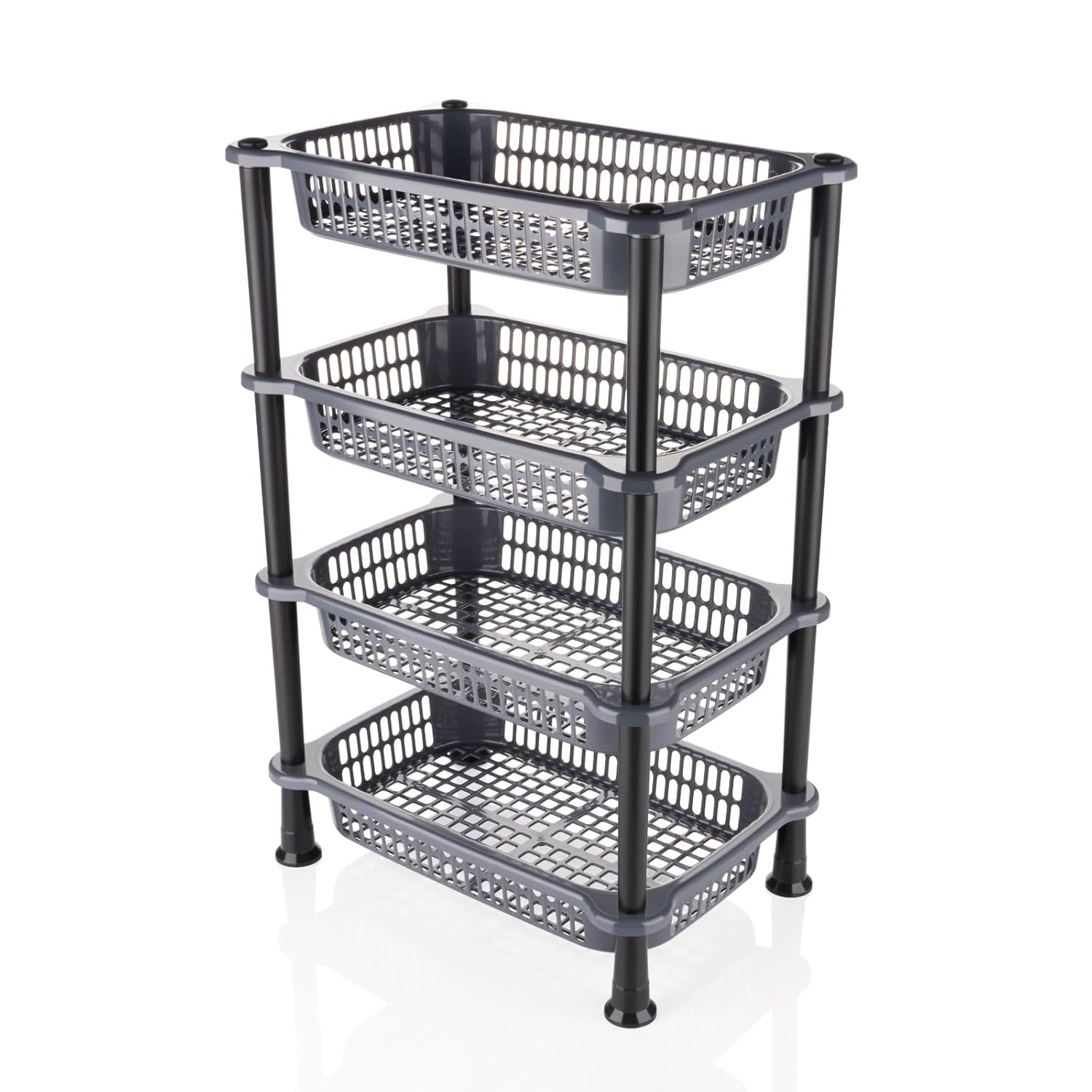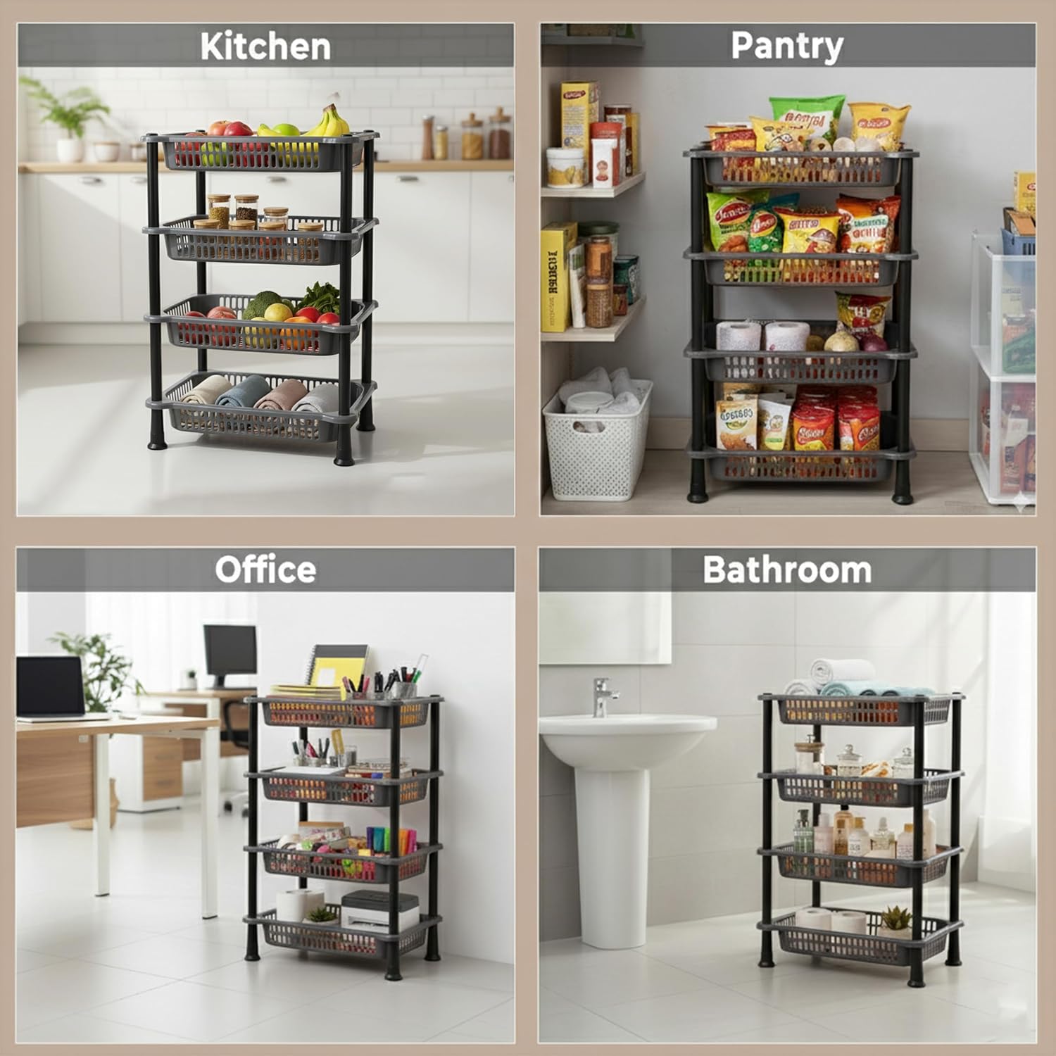 Organize your home efficiently with the Multipurpose 4-Layer Plastic Storage Rack, a practical and space-saving solution designed for modern households. Featuring four deep and spacious baskets, this storage rack offers ample room to neatly store vegetables, fruits, groceries, and everyday essentials.