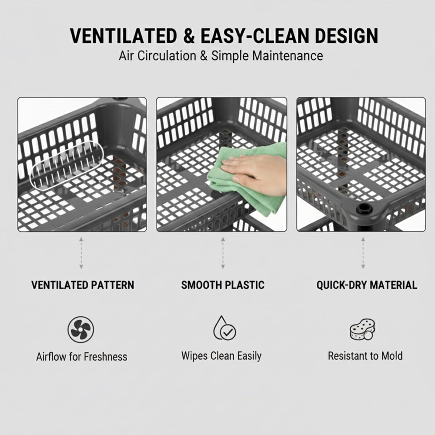 The open-grid basket design promotes proper airflow, helping keep stored items dry, fresh, and hygienic for longer periods. This makes it especially suitable for kitchen use, where ventilation plays an important role in maintaining food quality.