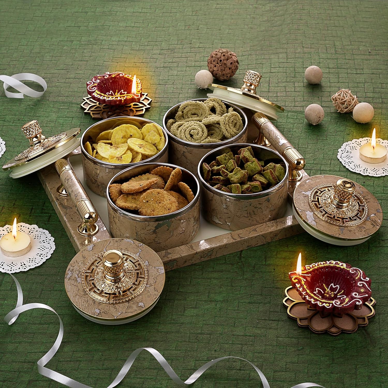 It’s more than just a container — it’s a decorative serving accessory that enhances the overall look of your table. Perfect for both everyday use and festive occasions, this dry fruit box is ideal for hosting guests or gifting during celebrations.