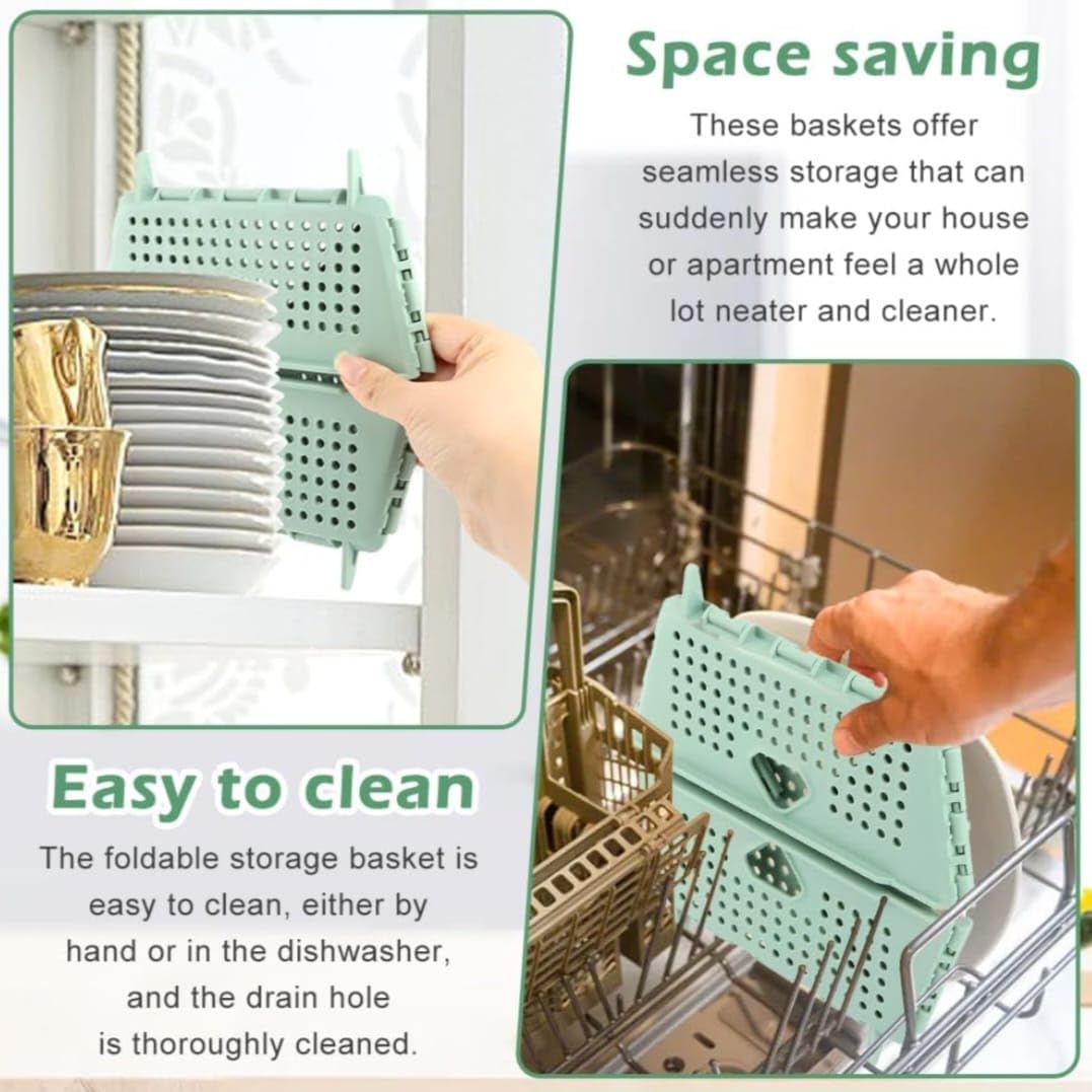Multipurpose Plastic Folding Square Basket with Handle – Green | Durable & Space-Saving Storage Solution