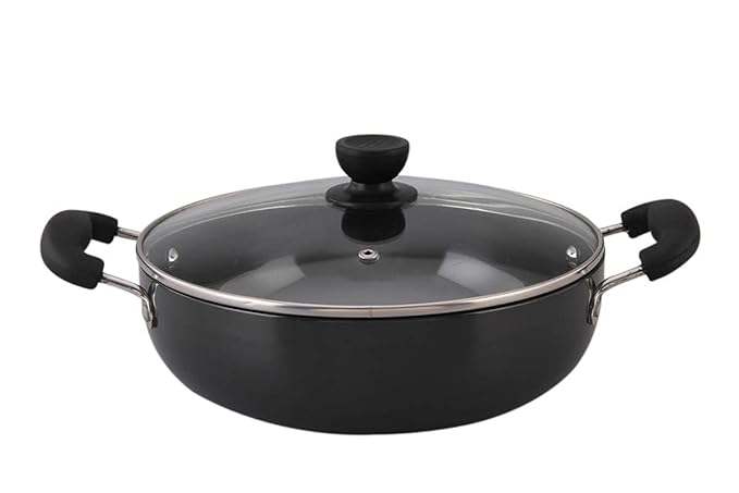 Non-Stick Kadhai with Glass Lid Aluminium Black – Perfect Balance of Style, Strength, and Functionality