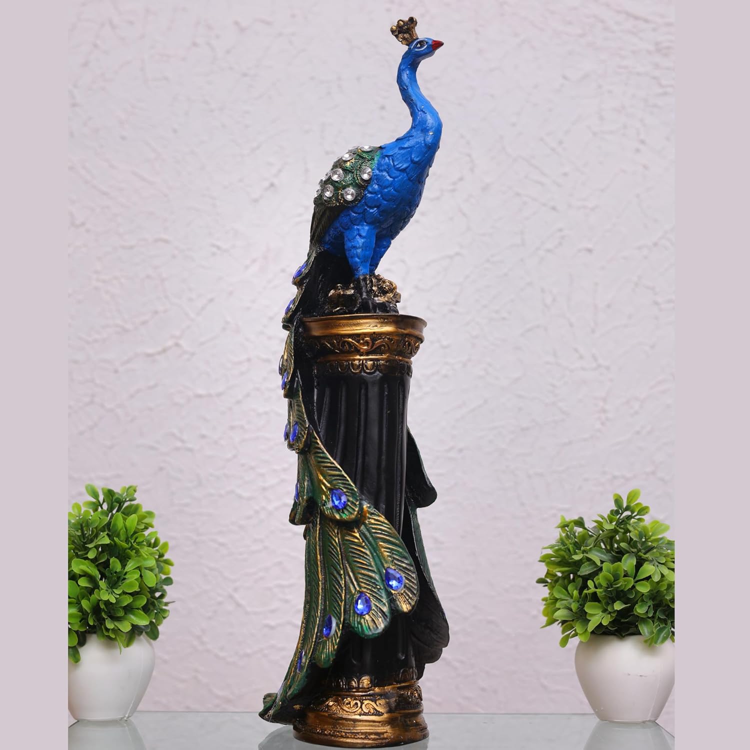 Artisans use precision tools and hand-painting techniques to bring the vibrant colours of a peacock to life. The stunning hues of blue, green, gold, and multicolour accents add richness and character to any space, making this showpiece a standout décor element.