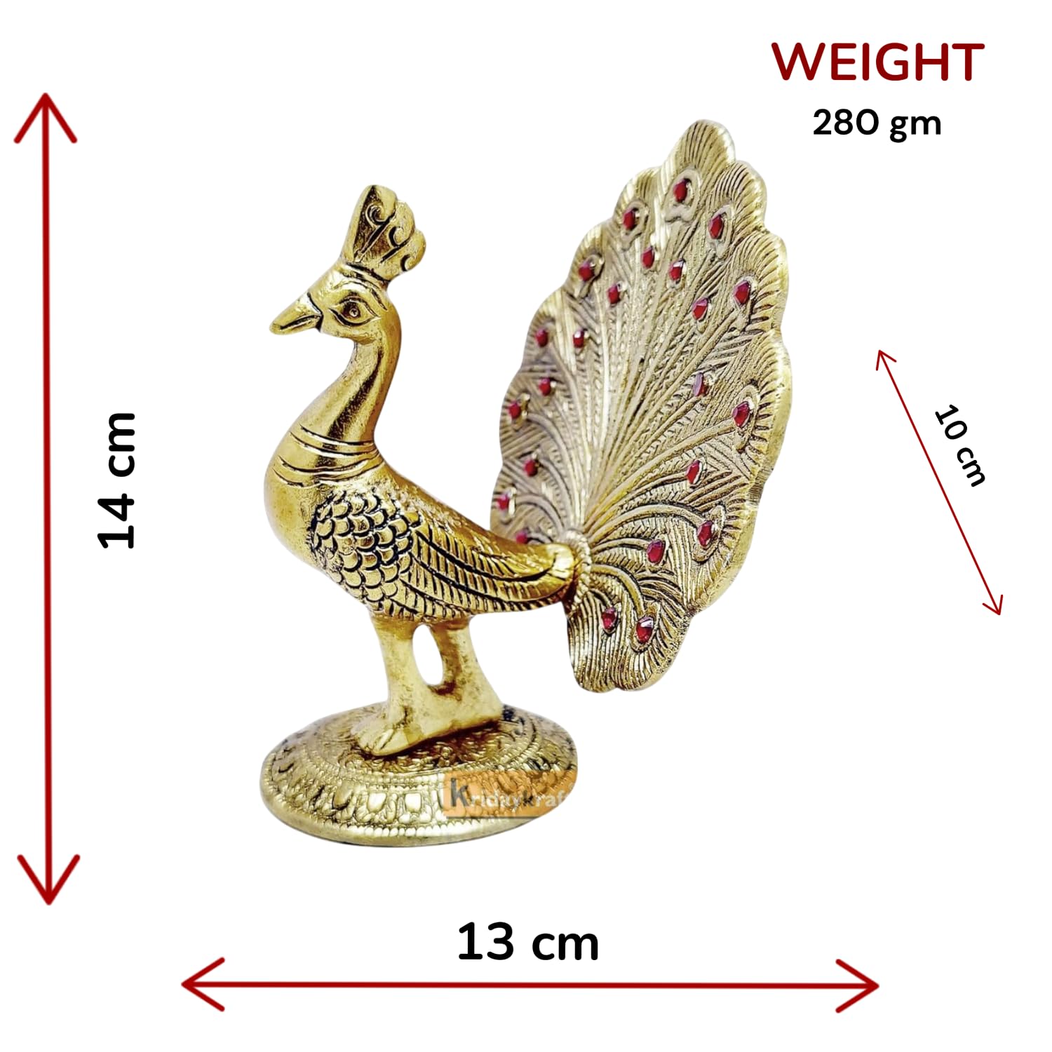 Beautifully crafted gold-plated peacock statue made from premium aluminium metal. Size: 10 × 13 × 14 cm, Weight: 280 grams, finished in a rich gold tone for a royal appearance. -