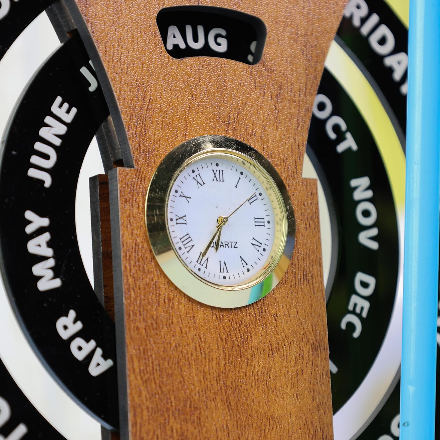 Personalized Desktop Calendar Round Wooden with Clock – Elegant, Functional & Thoughtful Desk Essential