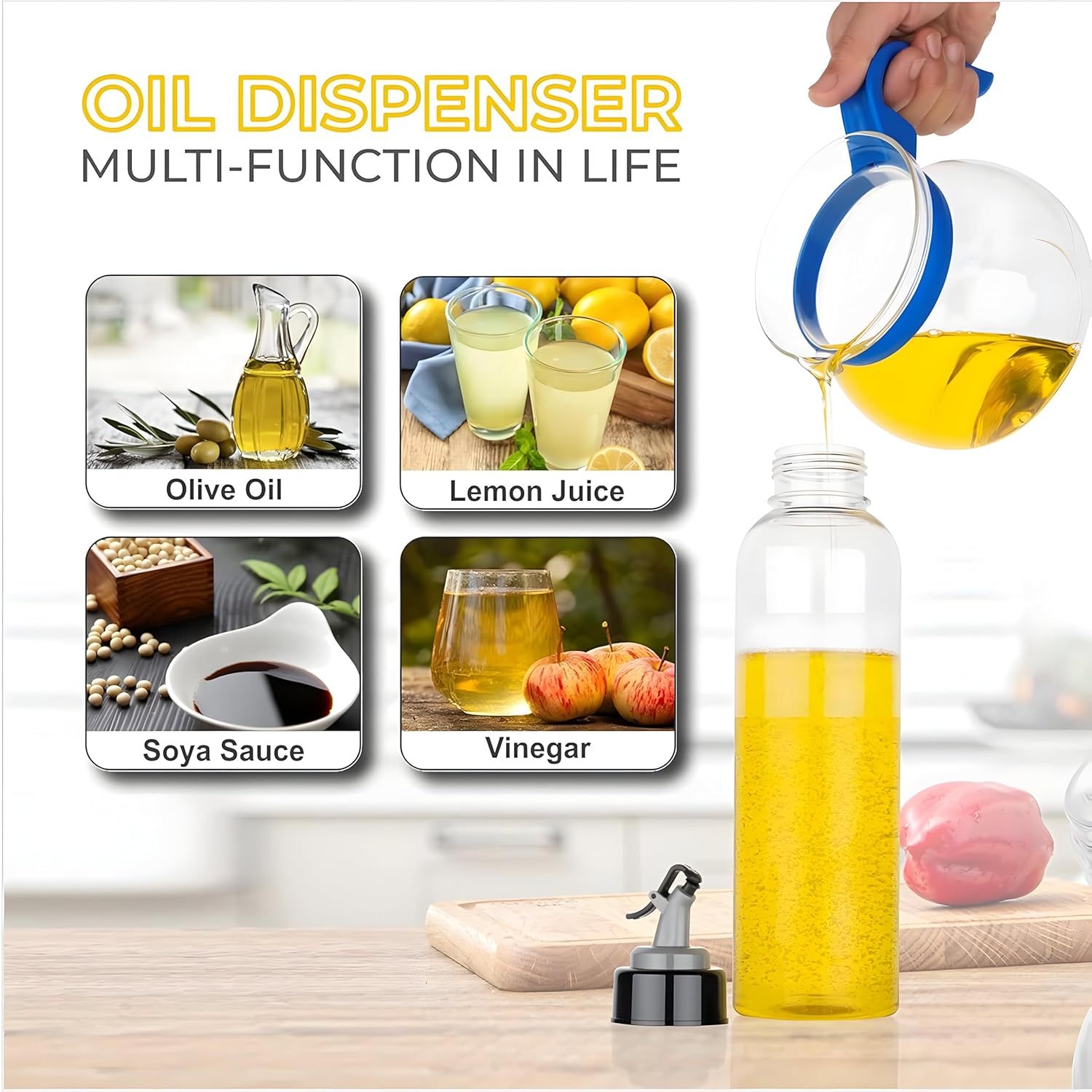 Whether you’re frying, sautéing, seasoning, or preparing daily meals, this refillable oil bottle helps you pour the right amount every time—without spills, drips, or wastage.