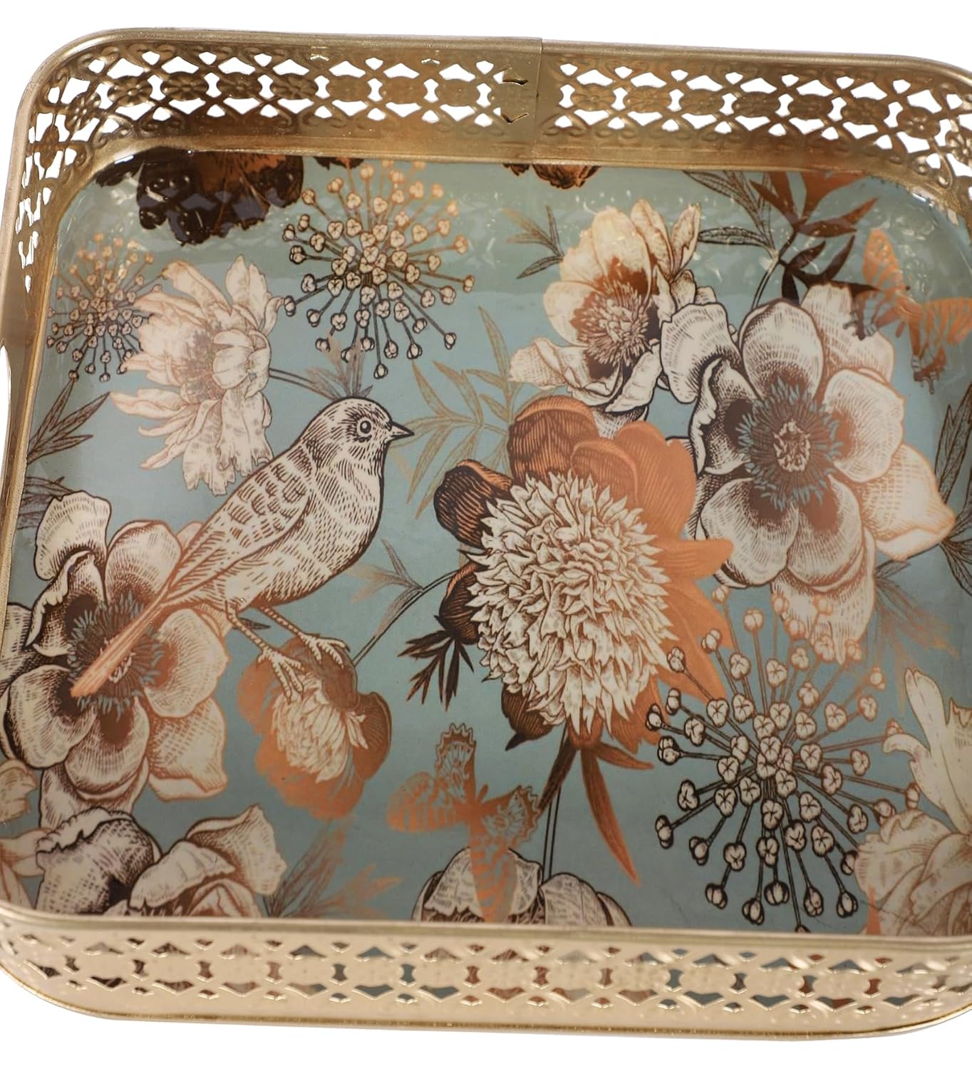 The Premium Bird & Flower Metal Tray is more than just a serving tool. It is designed for multiple uses that make it an essential accessory for any household: