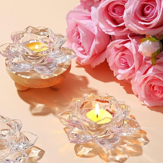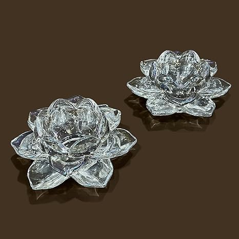 Glass Lotus Flower Diya – Premium Crystal-Style Lotus Tea Light Holder for Home & Festive Décor