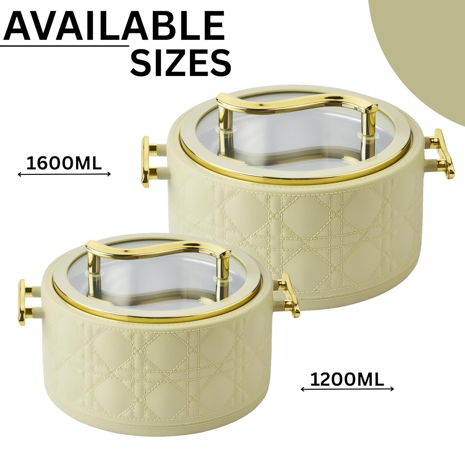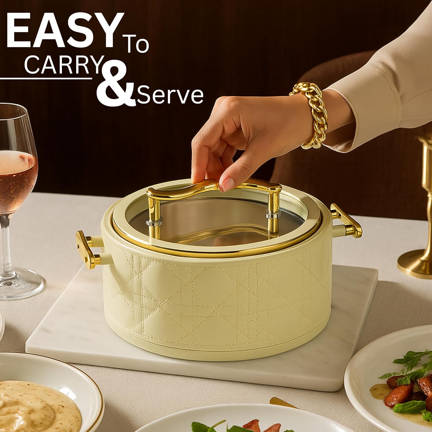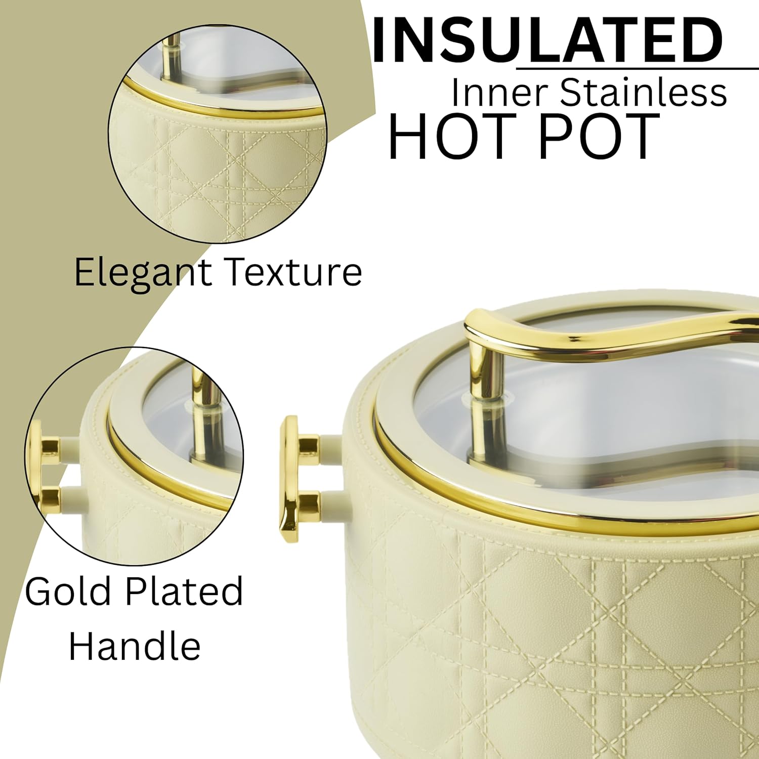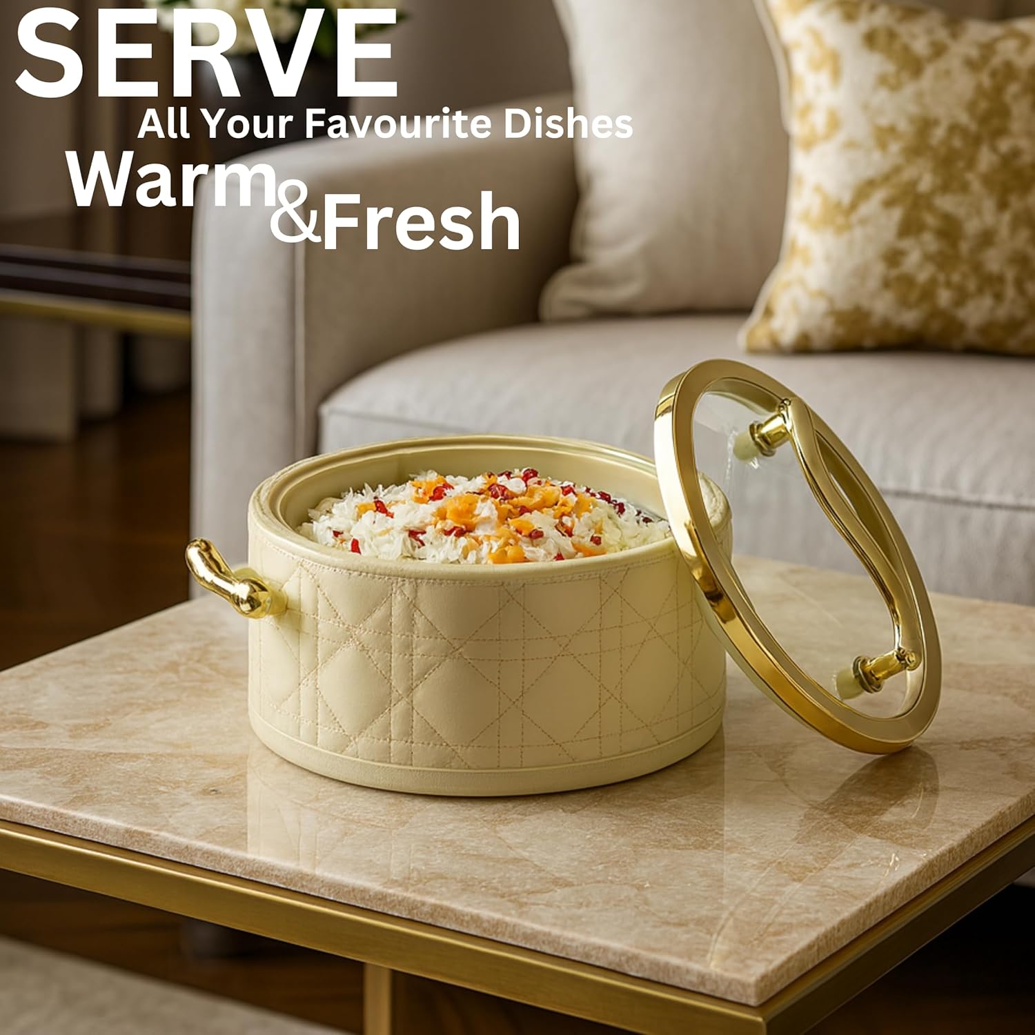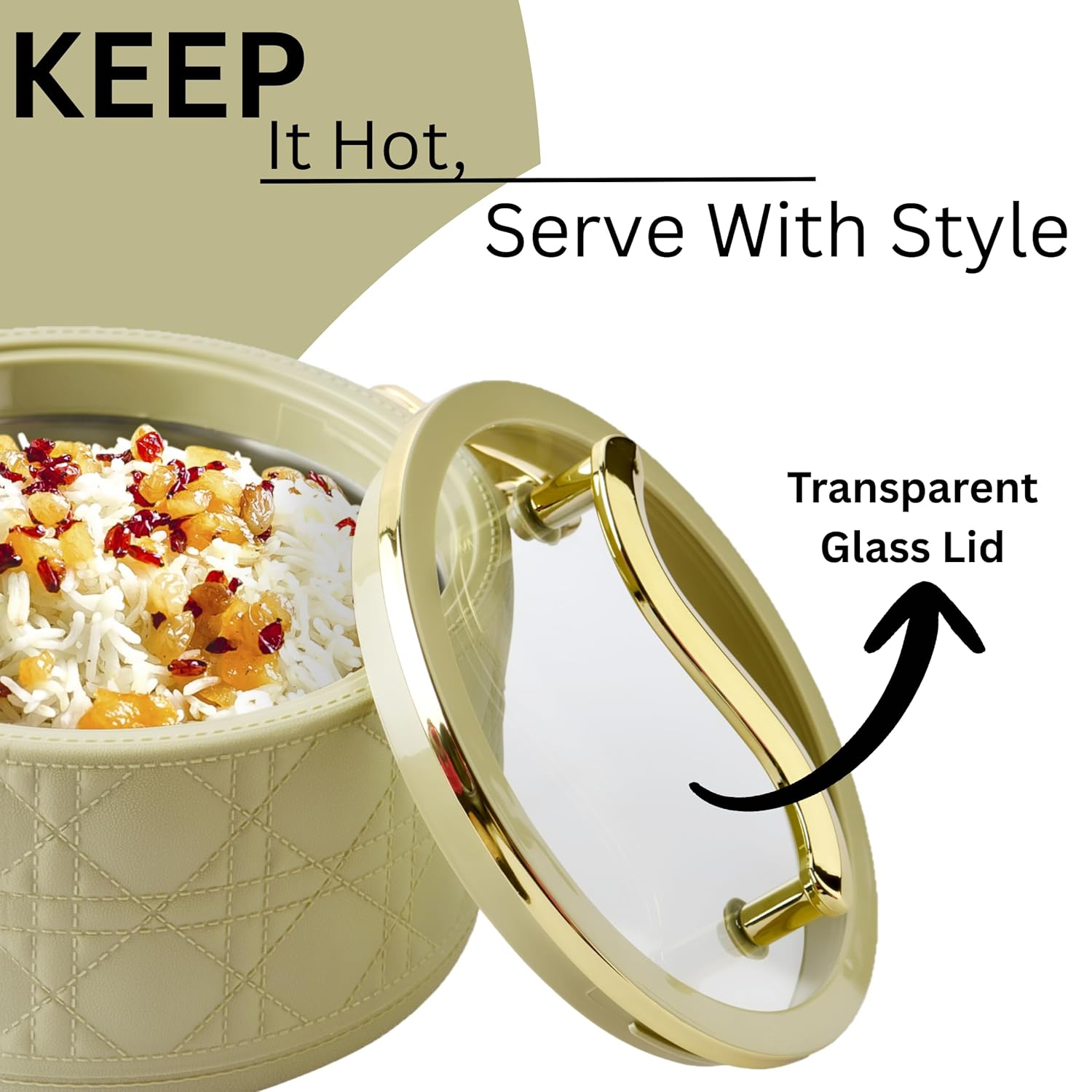 Premium Insulated Hot Pot Casserole with Glass Lid & Gold Handles – Elegant Serving with Long-Lasting Warmth