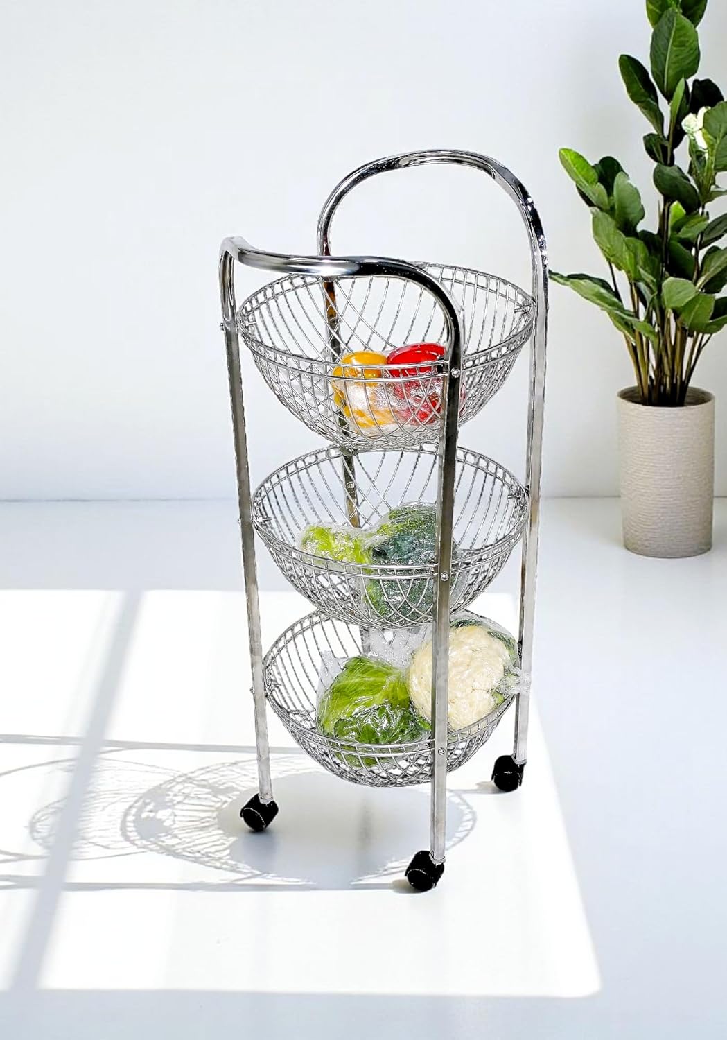 The 3-tier open mesh basket design promotes continuous airflow, helping keep vegetables and groceries fresh for longer. Store onions, potatoes, fruits, and daily staples without worrying about moisture buildup. The ventilated structure also allows you to see contents at a glance, saving time during cooking and meal prep. Each basket is generously sized to hold daily essentials securely.