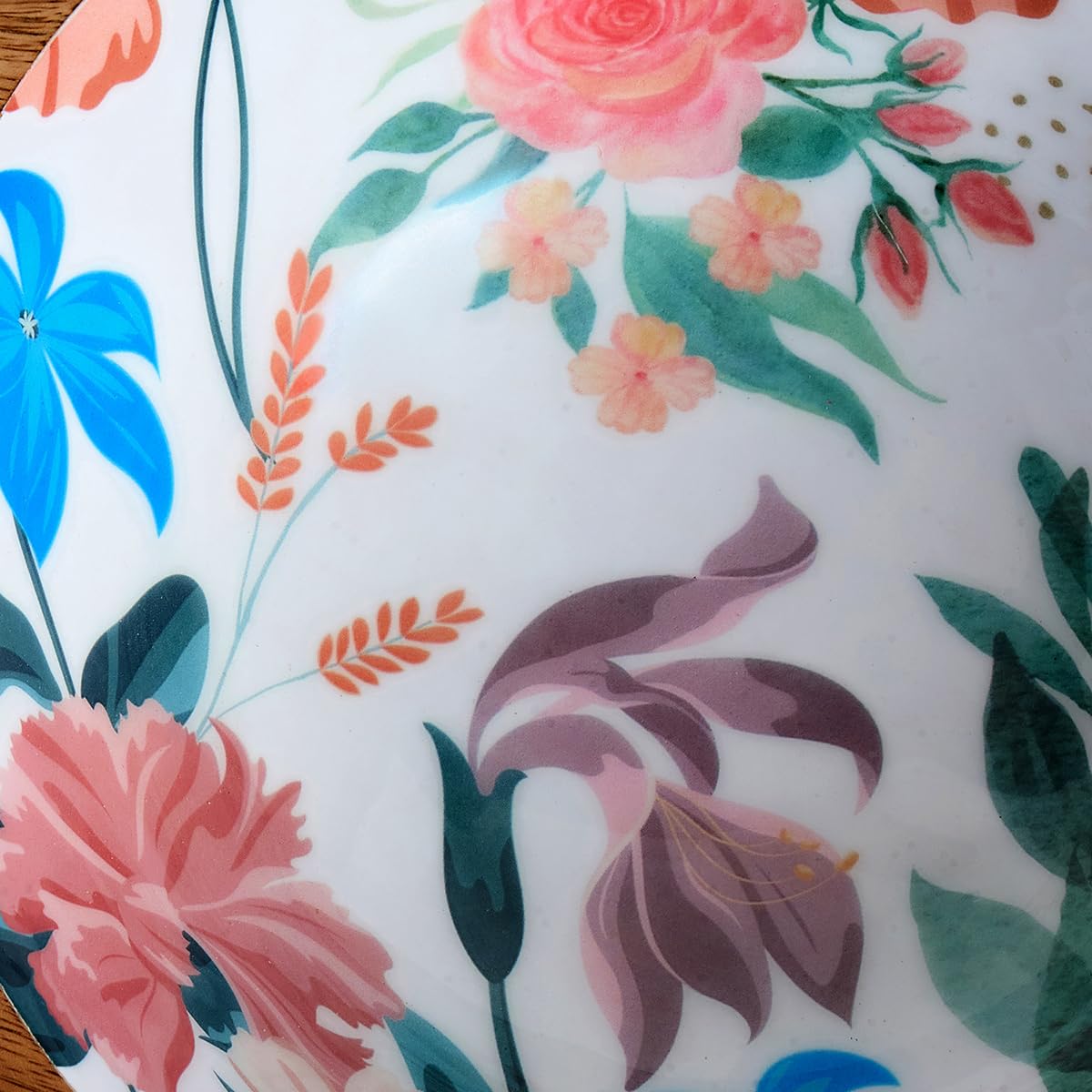 This serving bowl represents a perfect harmony of traditional Indian woodworking techniques and contemporary design. The round silhouette, smooth edges, and charming print reflect artistic brilliance and refined taste, while the enamelled coating enhances durability and water resistance.