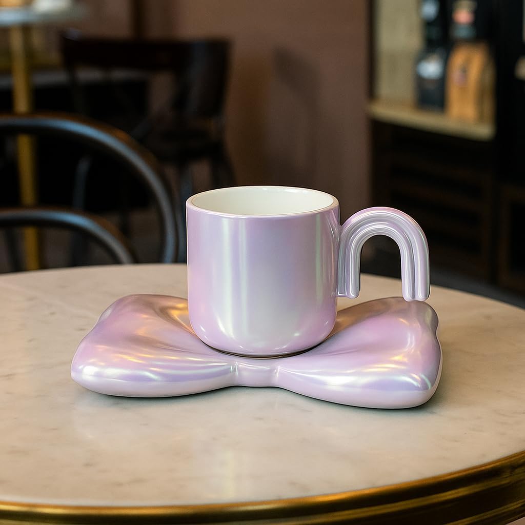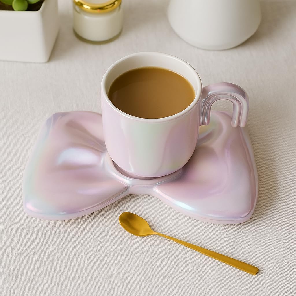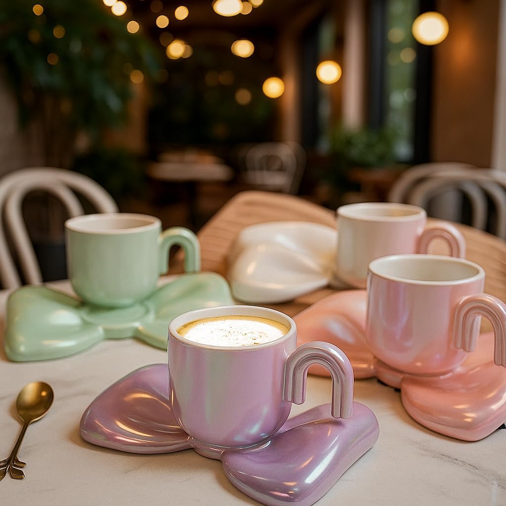The bow-shaped saucer adds a playful yet classy touch, making this set perfect for display or functional use. Whether used for personal enjoyment or as part of your table décor, this mug set creates a stylish focal point on any dining table, countertop, or kitchen shelf.