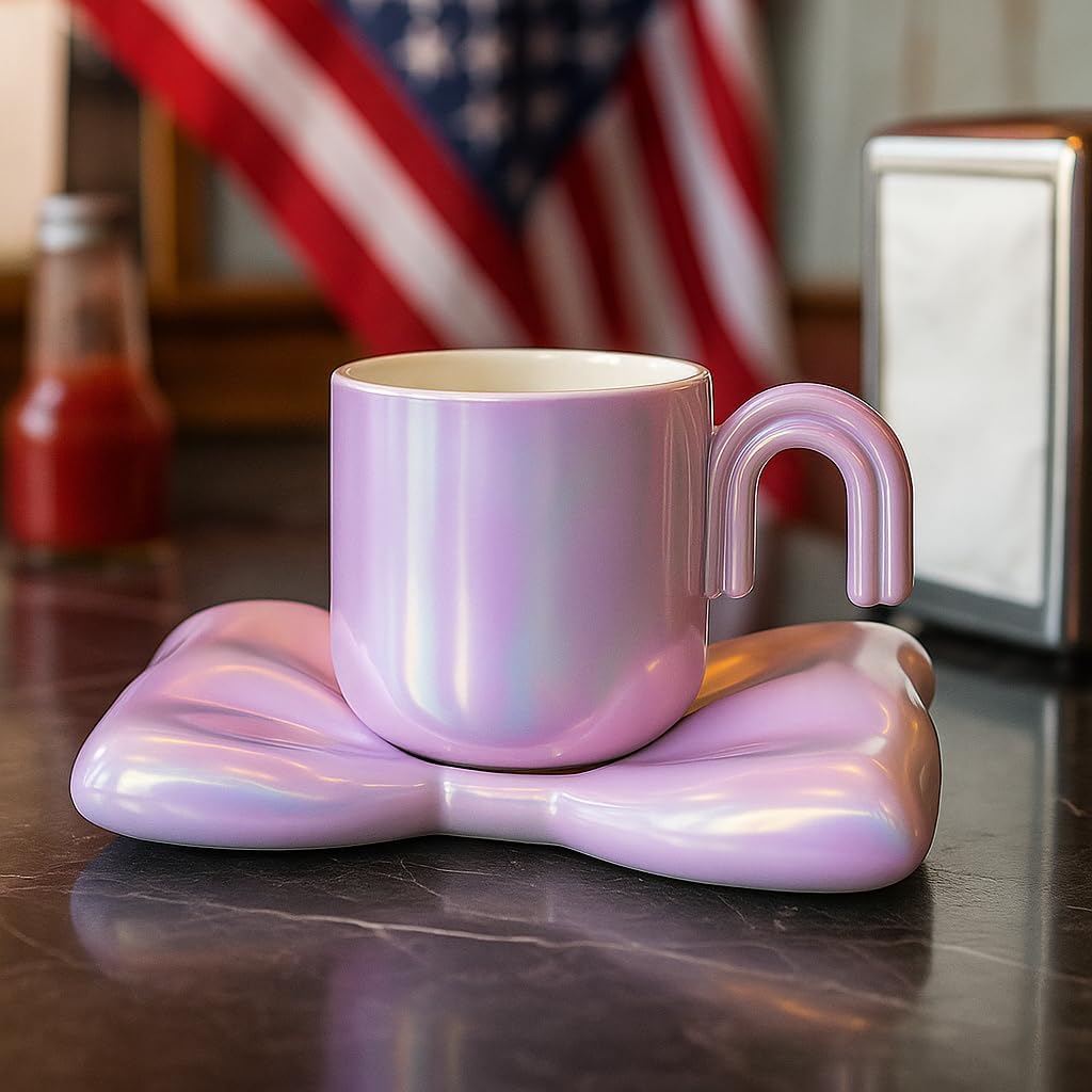 Purple Ceramic Mug Cup Set with Bow Saucer – Stylish, Durable, and Microwave Safe