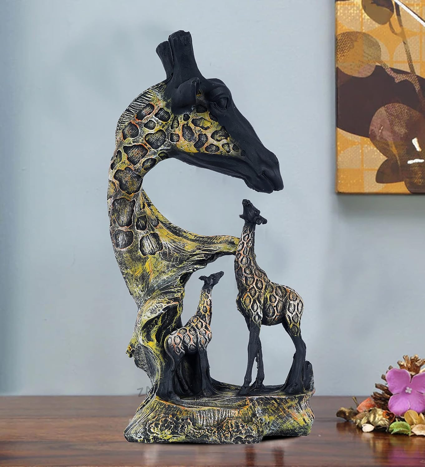 Transform your living space with the charming beauty and artistic elegance of the Resin Statue Giraffe Sculpture, a premium home décor piece designed to add personality, warmth, and sophistication to any interior. Meticulously handcrafted from high-quality resin and finished with detailed hand-painting, this multicolour giraffe figurine captures the stunning essence of the majestic safari animal. Whether displayed on your living room shelf, bedroom side table, study desk, or office cabinet, this artistic sculpture instantly enhances the ambience with its graceful design and meaningful symbolism.