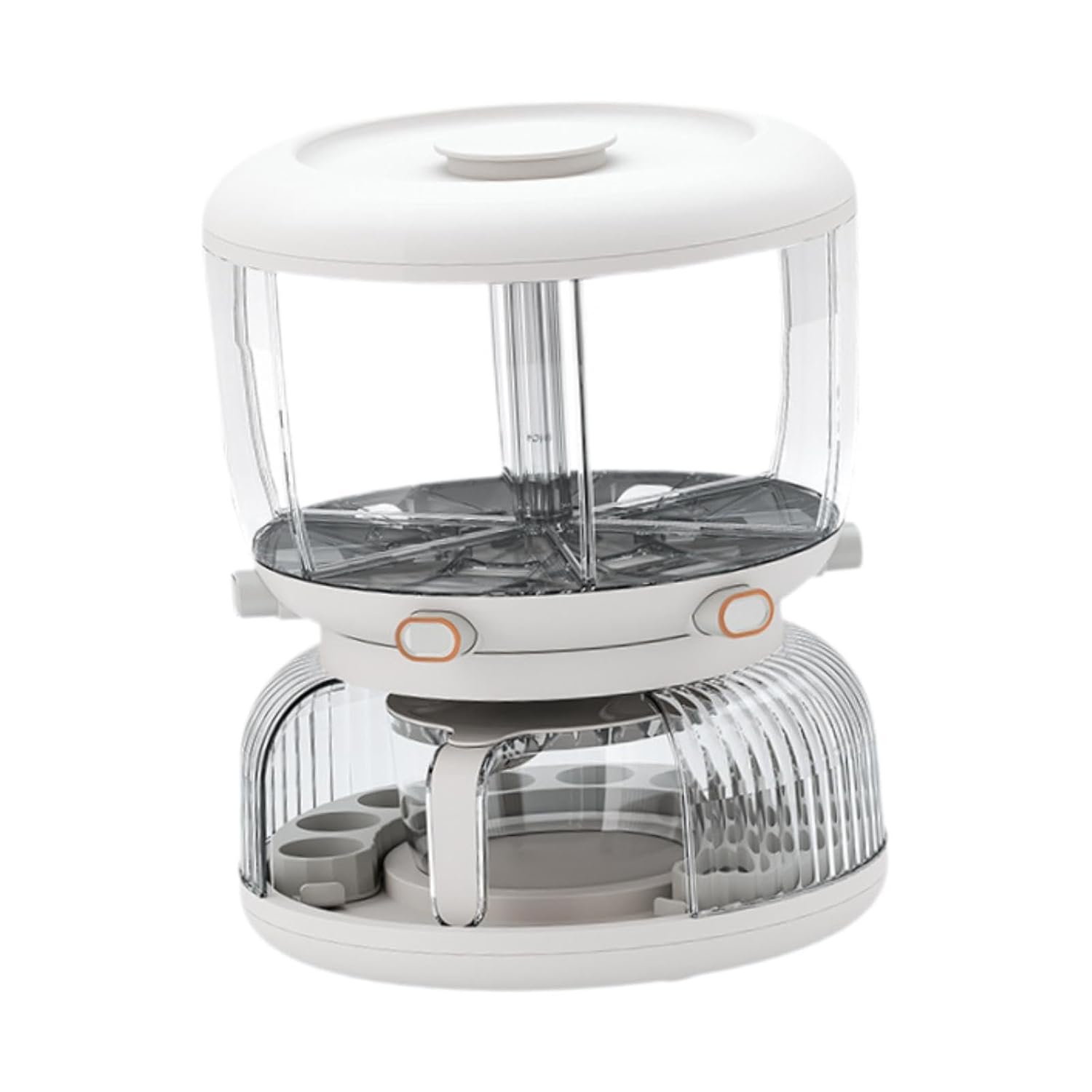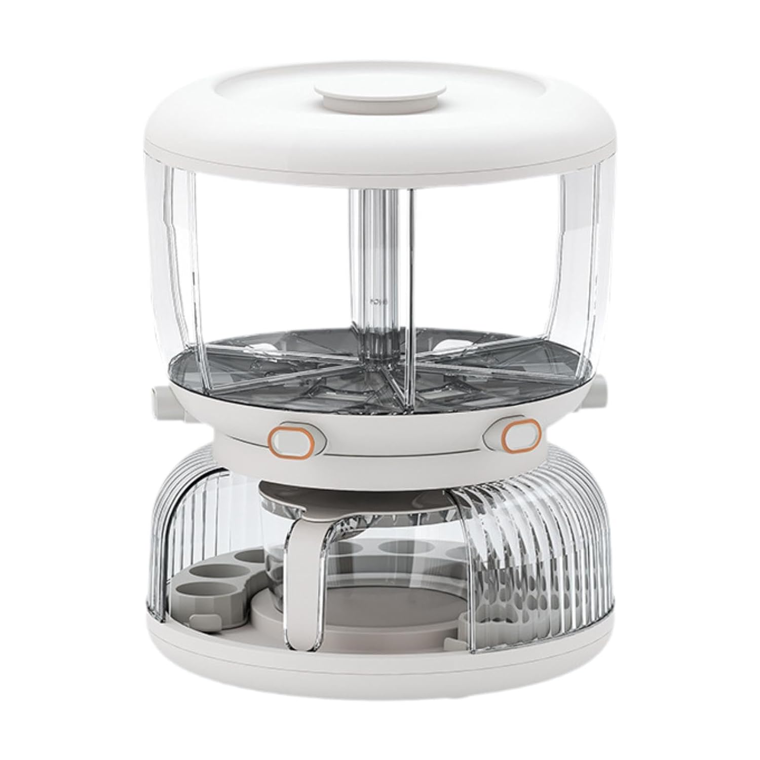 This rotating grain storage container is designed with six independent compartments, allowing effortless selection and dispensing of different grains with a simple press mechanism. Its large-capacity structure makes it ideal for storing a variety of dry foods while keeping your kitchen organized.