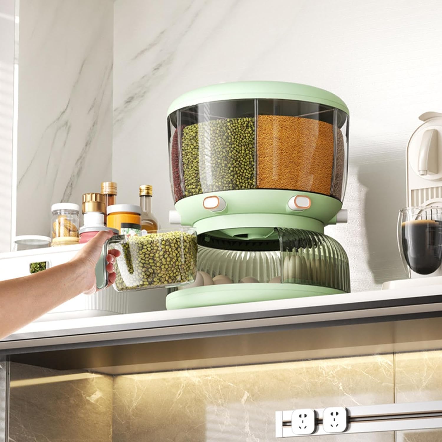 Designed with a large overall capacity, this grain dispenser can hold sufficient quantities of multiple grains for daily household use. It is ideal for families who prefer bulk storage but still want easy access to ingredients. By keeping everything in one container, you reduce the need for separate storage jars, making your kitchen look clean, uniform, and well organized.