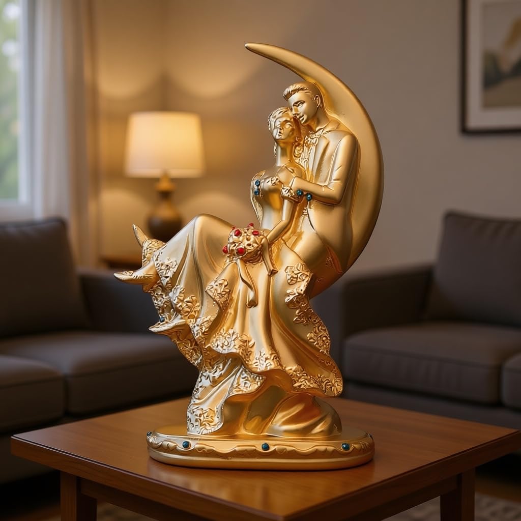 Romantic Moon Couple Showpiece (Gold) – A Golden Expression of Love, Romance & Togetherness