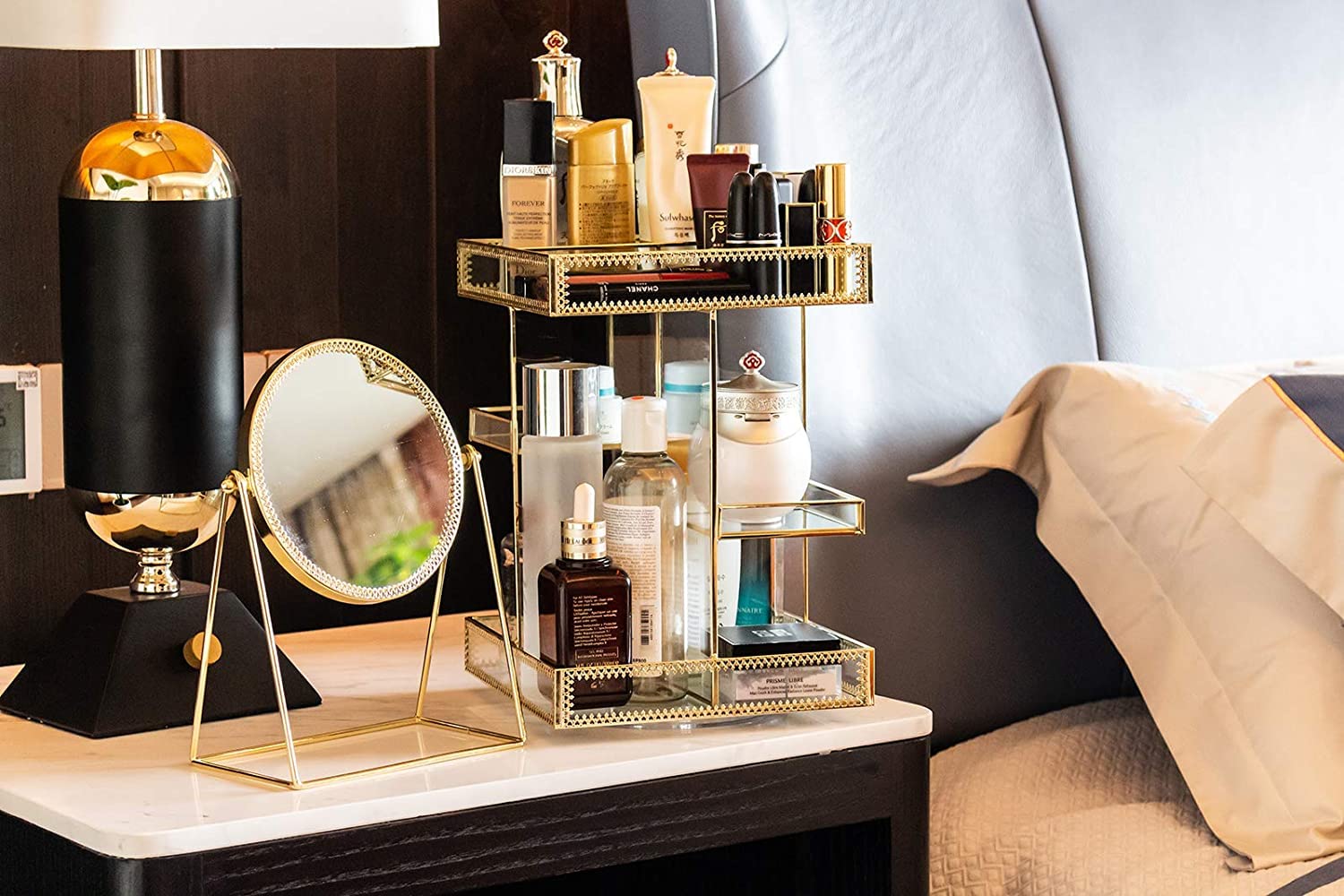 🌸 Rotate Golden Beauty Makeup Mirror with Stand – Timeless Elegance Meets Practical Beauty