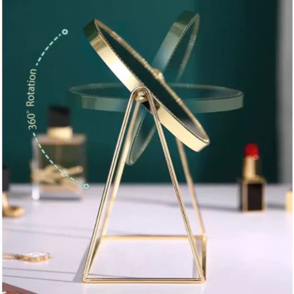 The Rotate Golden Beauty Makeup Mirror with Stand is more than just a reflection tool—it’s a statement piece for your dressing table. With its polished golden frame, vintage charm, and practical 360-degree rotating design, this mirror brings luxury and convenience to your daily beauty routine. Whether you’re perfecting your makeup, styling your hair, or adding a decorative accent to your room, this golden mirror is an essential companion.