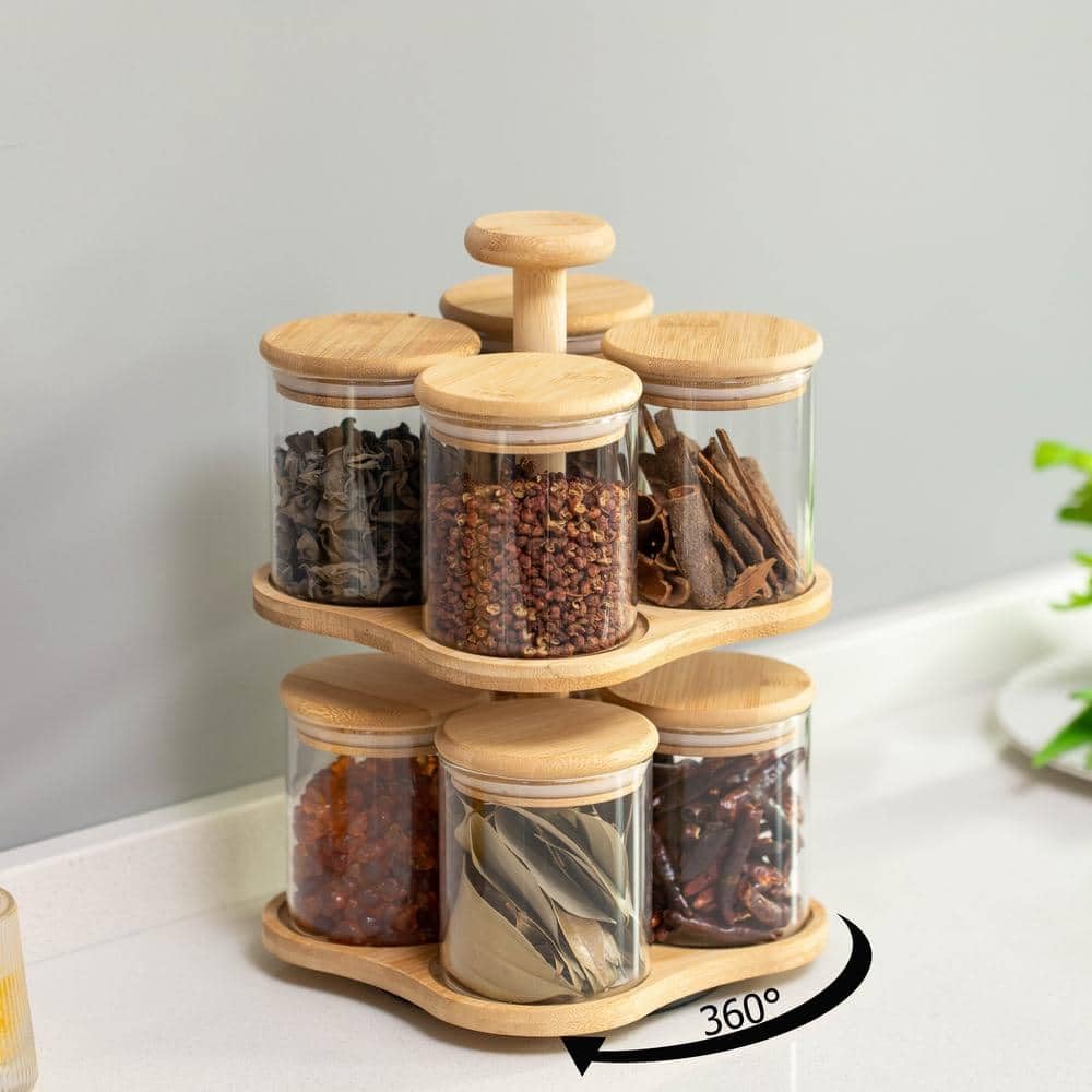 The vertical, two-tier structure makes excellent use of space, allowing you to store more items in a compact footprint. Whether placed on your kitchen counter, dining table, or pantry shelf, the rotating stand keeps everything organized and within easy reach.
