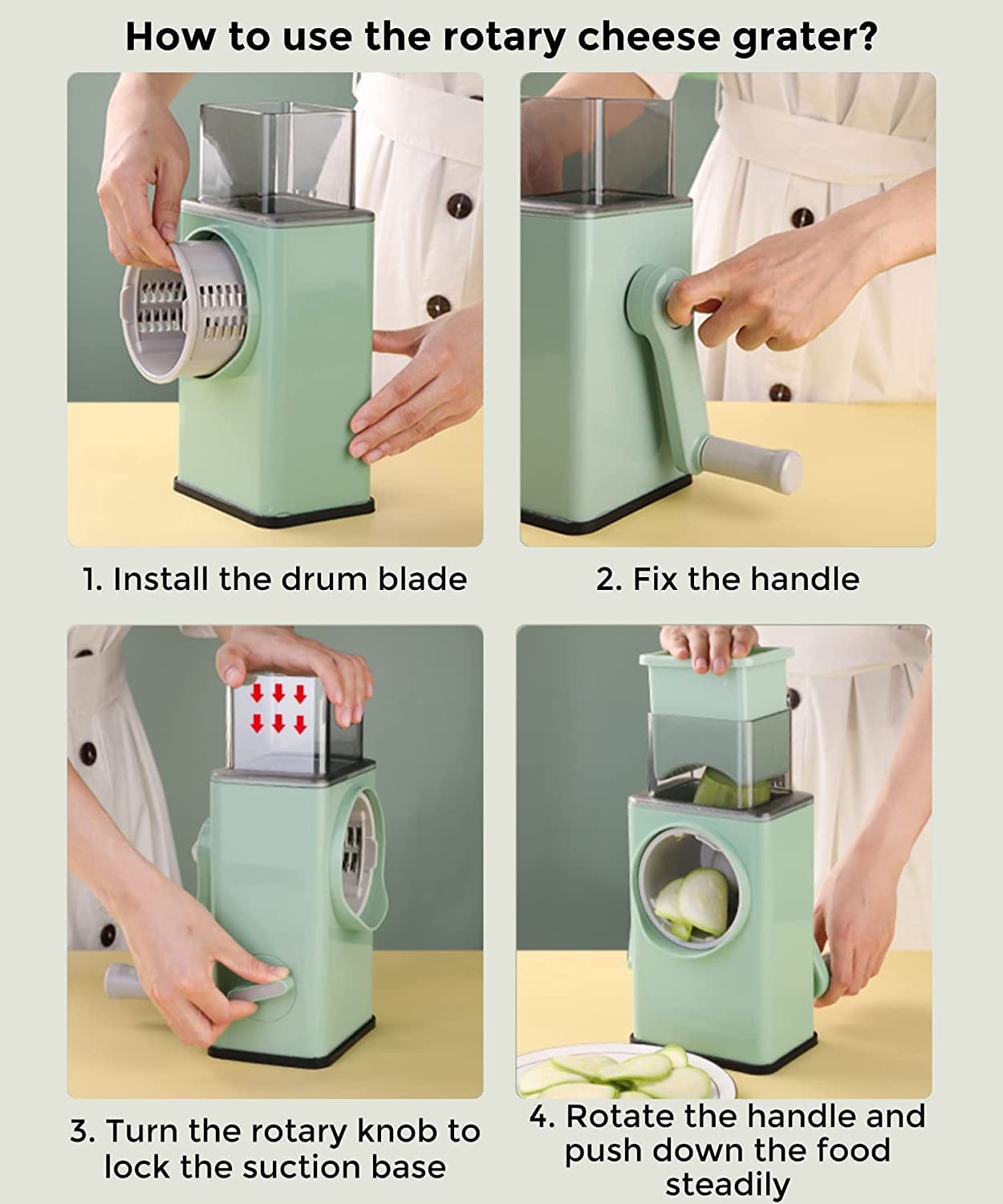 4-in-1 Upgraded Rotary Vegetable & Cheese Slicer