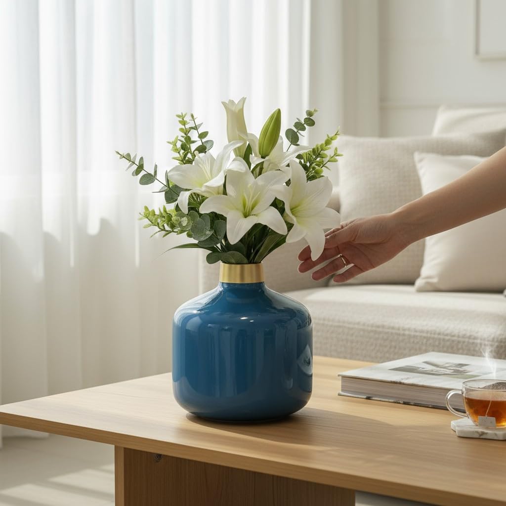 Bring elegance, charm, and a touch of luxury into your living space with the Round Metal Flower Vase – Royal Blue Edition, a beautifully designed decorative piece that enhances any corner of your home or office. With its striking colour, smooth curves, and impeccable craftsmanship, this vase is more than just a container for flowers—it’s a statement of style, personality, and refined taste.