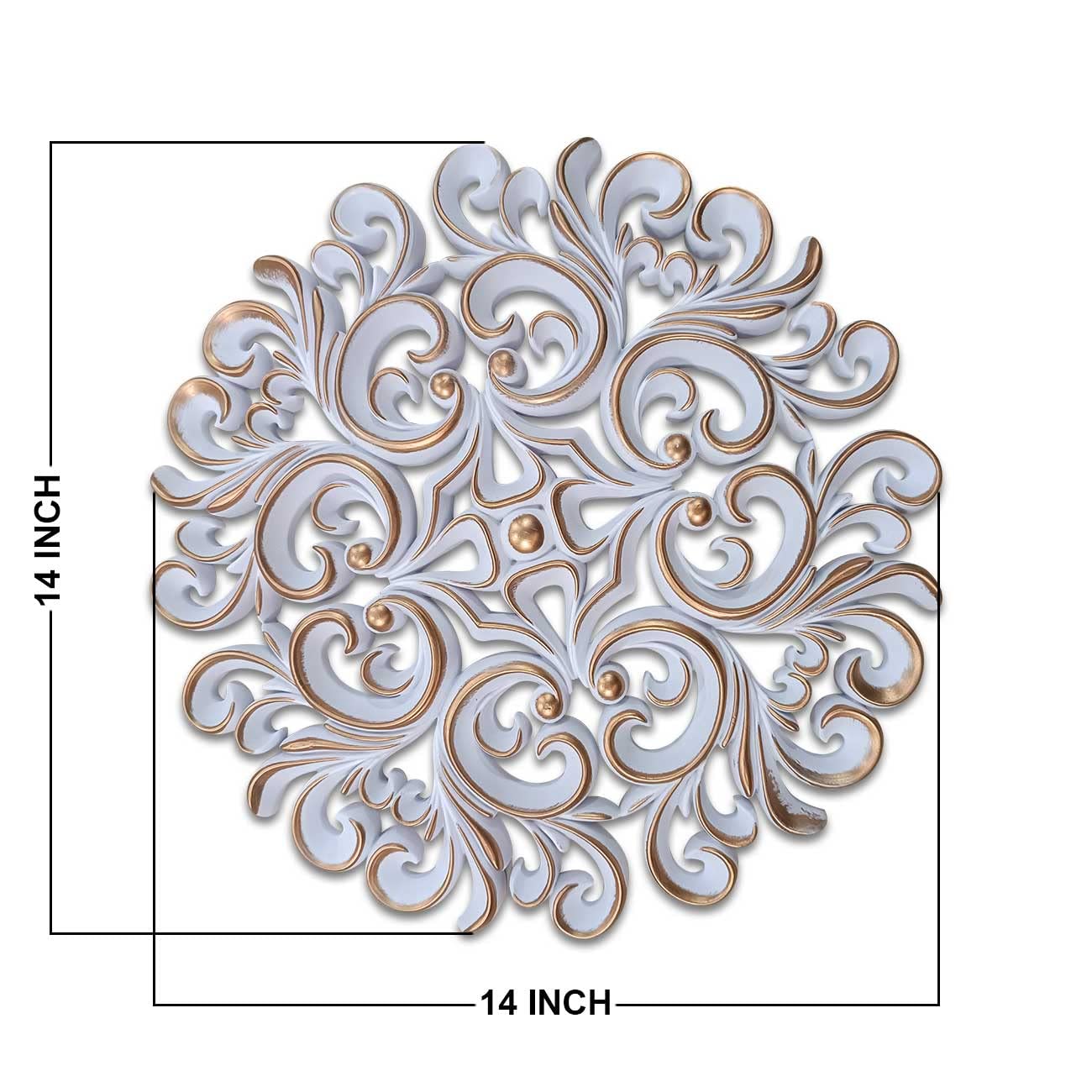 These decorative wall plates feature a beautiful floral design theme that symbolizes freshness, peace, and prosperity. The intricate floral patterns and metallic silver finish make them a stunning addition to any wall. Their round shape (14 x 14 inches) offers visual symmetry and can easily fit into both large feature walls and compact corners. The polished surface reflects light beautifully, creating a play of texture and depth that enhances your wall’s visual character.