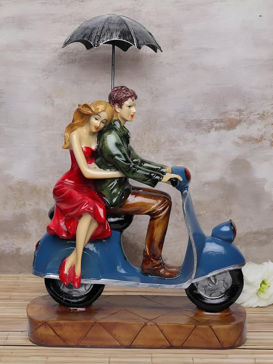 The couple riding a scooter symbolizes life’s journey filled with love, joy, and adventure. It is not just a décor piece but also a romantic reminder of shared dreams and happy moments.