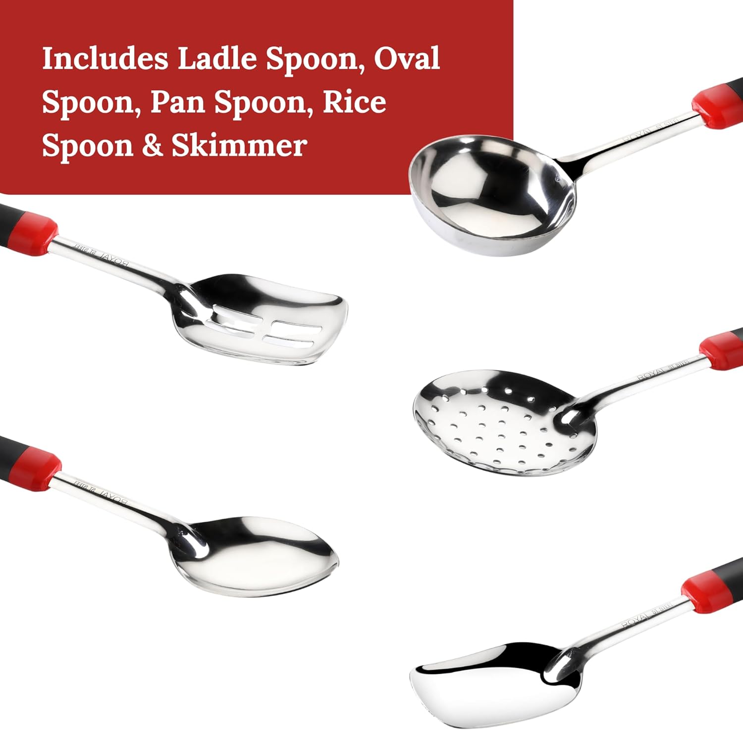 • Complete & Versatile Serving Set: The set includes essential serving utensils such as a ladle spoon, oval spoon, pan spoon, rice spoon, and skimmer, covering a wide range of serving needs—from soups and gravies to rice, curries, and fried foods.