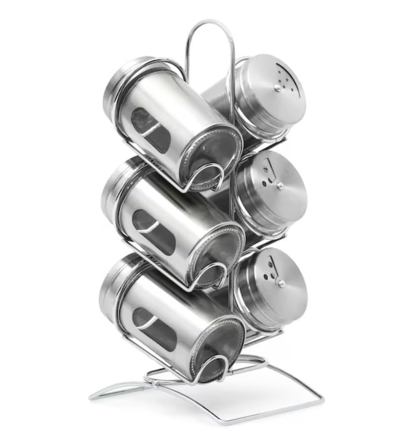 | Product | Set of 6 Stainless Steel & Glass Spice Jars with Stand |