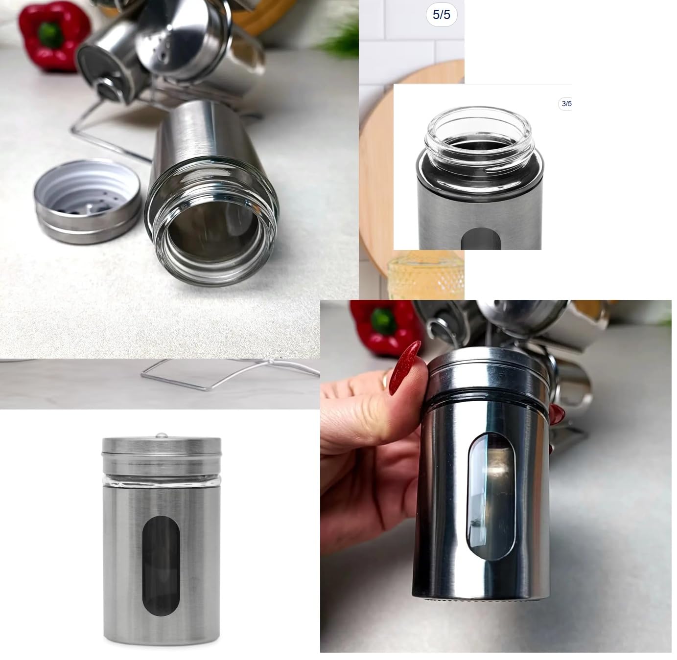 Premium Stainless Steel & Glass Build: Crafted from high-quality stainless steel combined with durable glass, these spice jars are designed to ensure long-lasting use while maintaining the freshness and aroma of your spices and condiments.