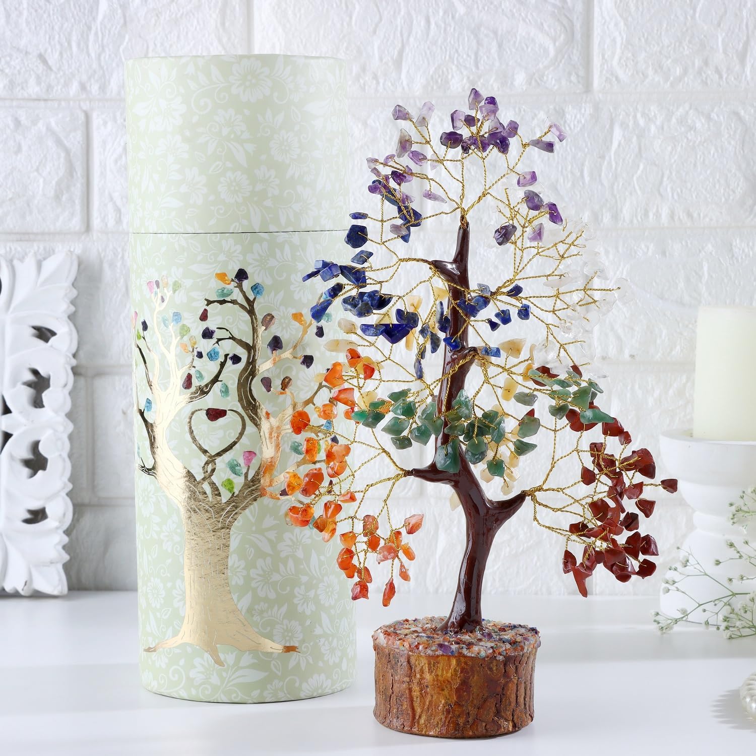 This energy tree includes seven vibrant crystals, each resonating with one of the seven chakras in the human body: