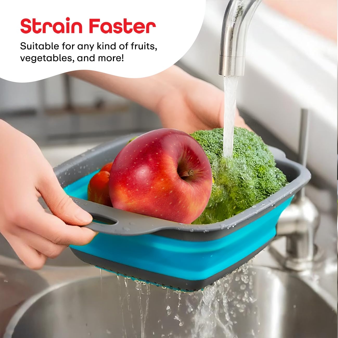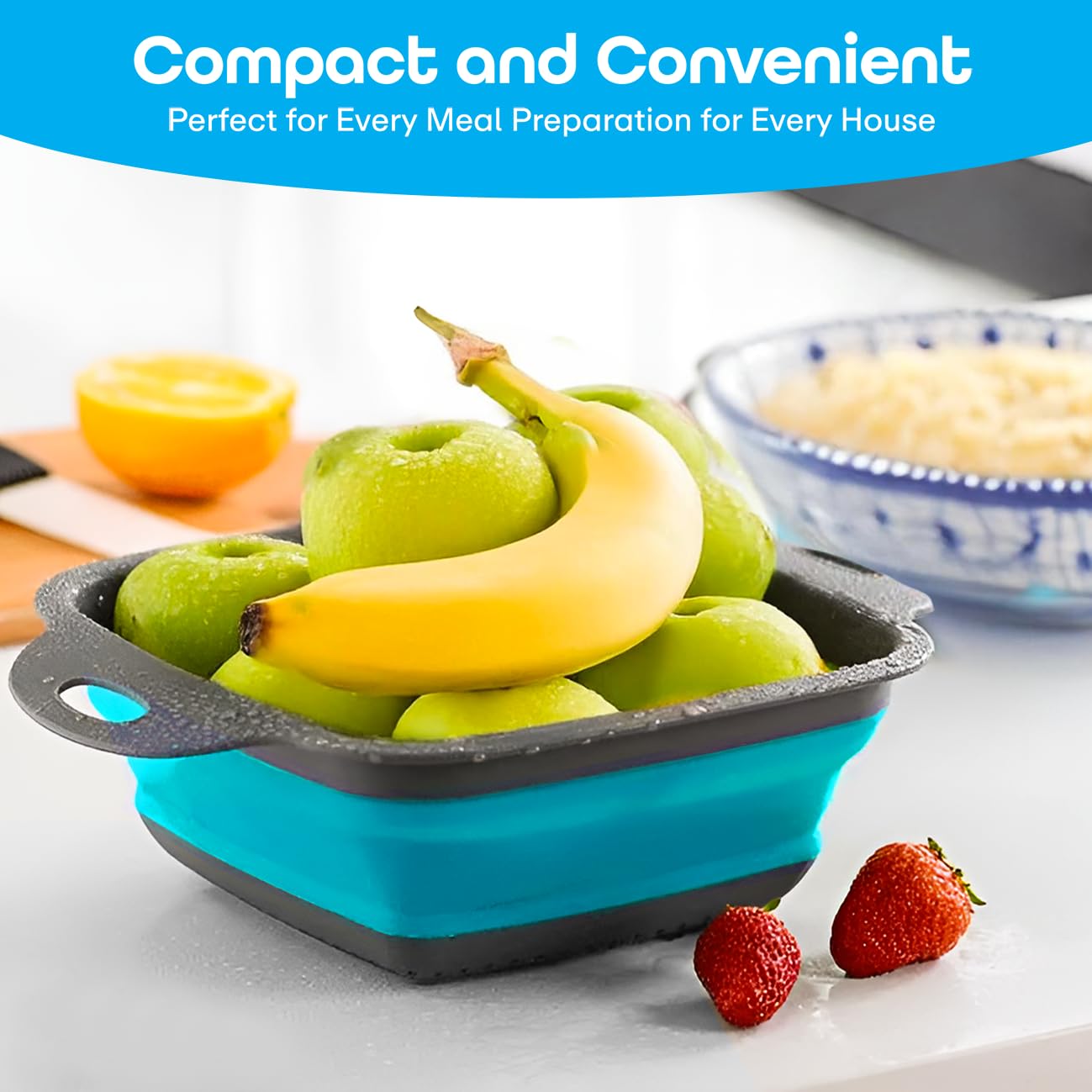 ✔ Superb Vegetable Washing Basket – This set of 2 collapsible silicone colanders doubles as a convenient vegetable washing basket. Ideal for rinsing fruits and vegetables quickly and efficiently, making everyday food preparation easier.