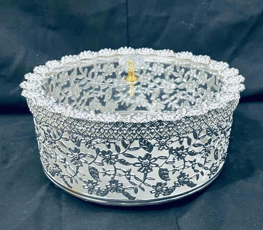Whether placed on a dining table, coffee table, sideboard, or festive setup, this silver centerpiece box instantly becomes a statement décor piece. Its intricate floral detailing, classic silver finish, and premium craftsmanship make it more than just a storage container—it is a symbol of luxury, culture, and refined taste.