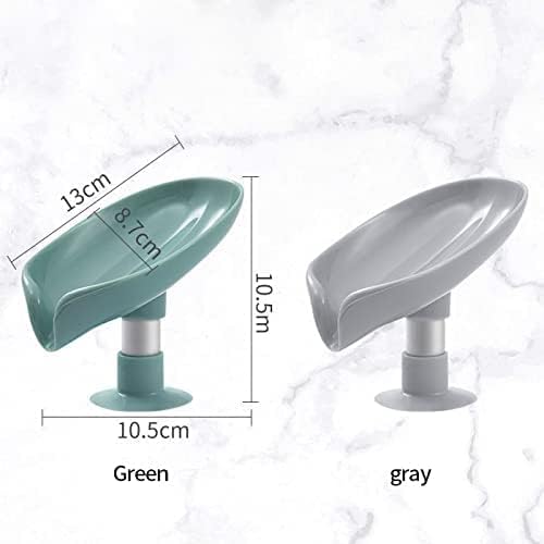 Leaf-Shape Self Draining Soap Dish Holder | Waterfall Drain System | Non-Slip Suction Cup | 2-Piece Set | ABS + Space Aluminum | Bathroom & Kitchen Organizer