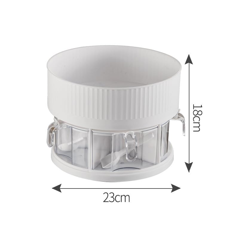 This product includes 1 piece 360° rotating seasoning spice box, crafted using durable ABS and Polypropylene (PP) materials. Designed with compact dimensions of 23 cm × 23 cm × 18 cm, it fits perfectly on kitchen countertops, inside cabinets, or on dining tables without occupying excess space.