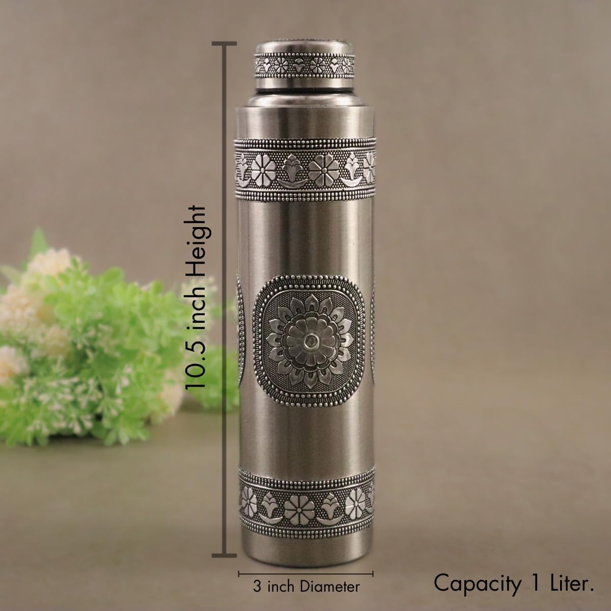 Stainless Steel Oxidised Worked Water Bottle 1000 ml – Durable, Stylish & Eco-Friendly