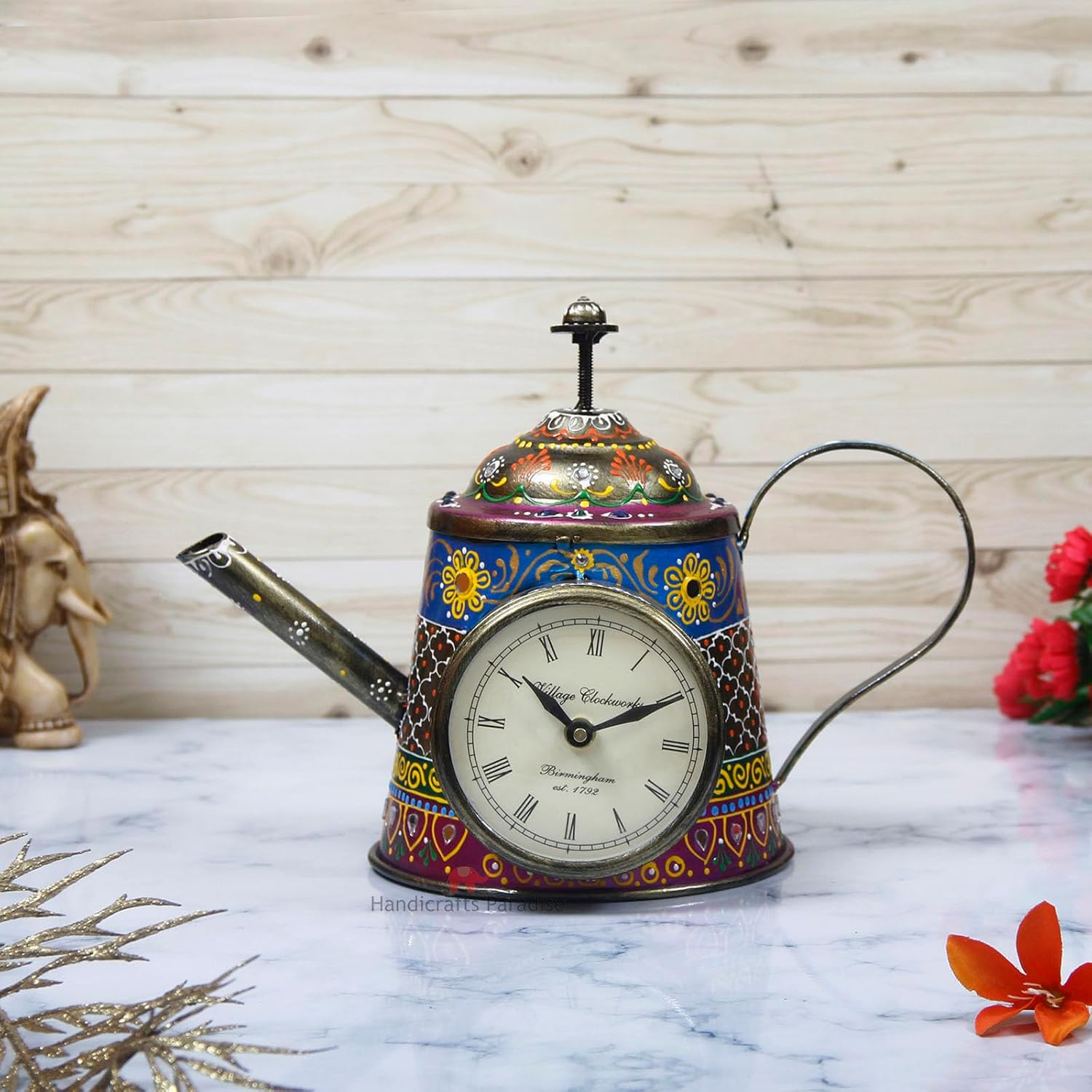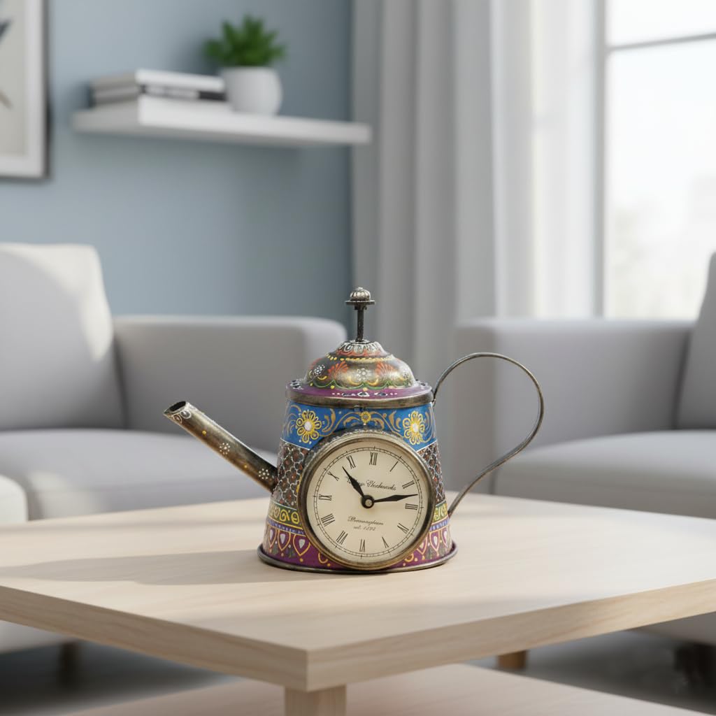 The Table Clock Kettle Shaped Showpiece is versatile and can be used in multiple settings:
