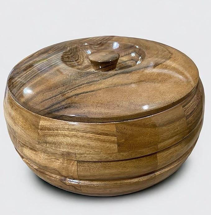 • 9-Inch Chapati Box – Made from Acacia wood, valued for its smooth texture and natural resistance to moisture.